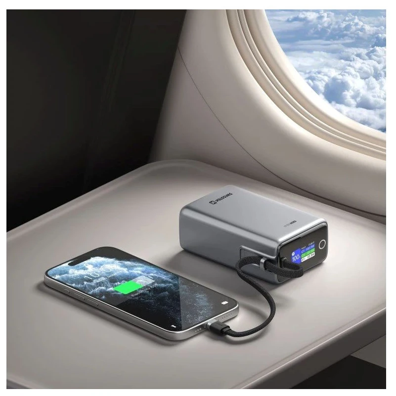 - adaptée pour la cabine d'un avion – capacité de 25 000 mAh (96,25 Wh) juste en dessous de la limite de 100 Wh, vous pouvez donc emporter la powerbank en toute sécurité dans l'avion
