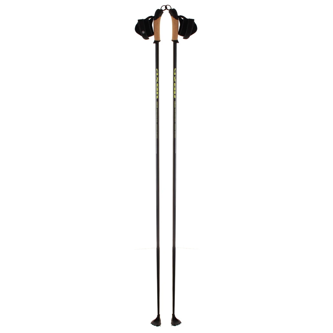 Bâtons de ski de fond en carbone AKTIV PROFI de la marque tchèque Axon, pour patineurs et classiques, en carbone à 50% avec poignée en liège, dragonne réglable et rondelle de 60 mm de diamètre.
