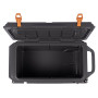 Les poignées ergonomiques et les roues tout-terrain vous permettent de transporter facilement la boîte, même sur un terrain accidenté. Le décapsuleur intégré et les deux porte-gobelets vous permettent de déguster vos boissons directement à la glacière. De plus, elle est équipée de 2 serrures de sécurité, de pointes amovibles sur le couvercle pour sécuriser la boîte dans la voiture ou sur le bateau, et de pieds en caoutchouc pour éviter les déplacements.