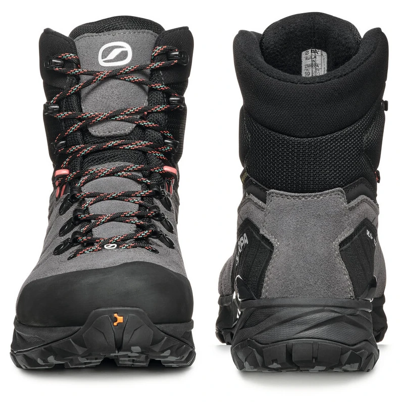 La semelle intermédiaire contient de la mousse EVA de différentes densités . Grâce à ce réglage, les chocs provoqués par la marche sur un terrain dur sont amortis. Une autre partie de la semelle intermédiaire est un système de torsion stabilisateur dynamique en TPU avec une épaisseur différenciée pour la stabilité et la résistance de la chaussure à la torsion. La semelle Presa® TRK-02 développée par SCARPA® avec un composé SuperGum garantit une adhérence élevée sur la glace et la neige et une agilité optimale.