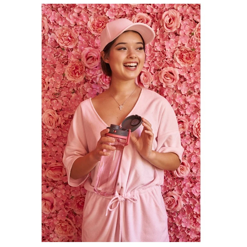 La bouteille est résistante aux fuites et dispose d'un verrou à bouton-poussoir qui empêche les déversements accidentels. La bouteille est dotée d'une poignée pratique pour un transport facile et d'un couvercle de protection qui la protège de la saleté et de la crasse. Le couvercle et le corps peuvent être lavés dans le panier supérieur du lave-vaisselle. Convient à la plupart des porte-gobelets dans la voiture et sur le vélo. En position ouverte, le produit n'est pas résistant aux déversements, nous vous recommandons donc de le transporter en position verticale.