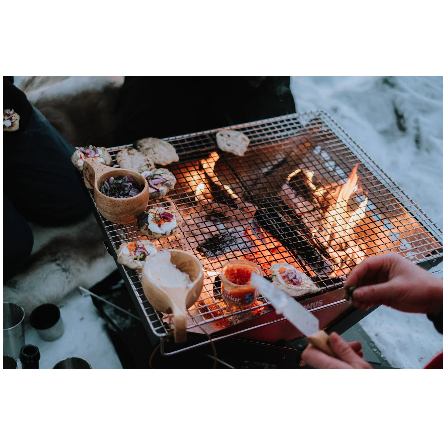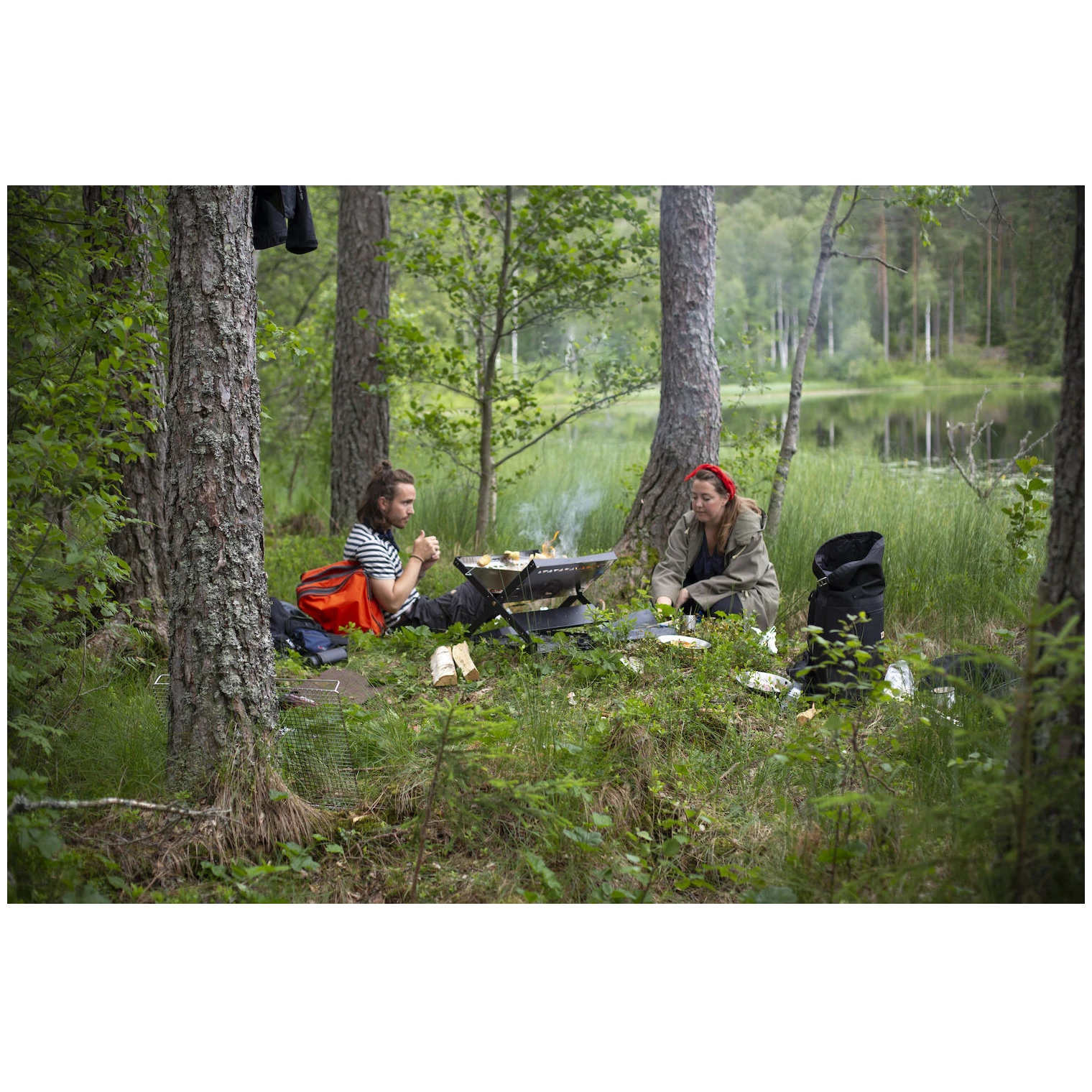 Le cendrier intégré protège le sol de la chaleur et des braises, pour ne laisser aucune trace. Le cadre stable en acier revêtu par poudre et les écrans coupe-vent en acier inoxydable assurent une longue durée de vie et une utilisation sûre. Le set comprend une grille de barbecue et une sangle de rangement pour un transport facile.