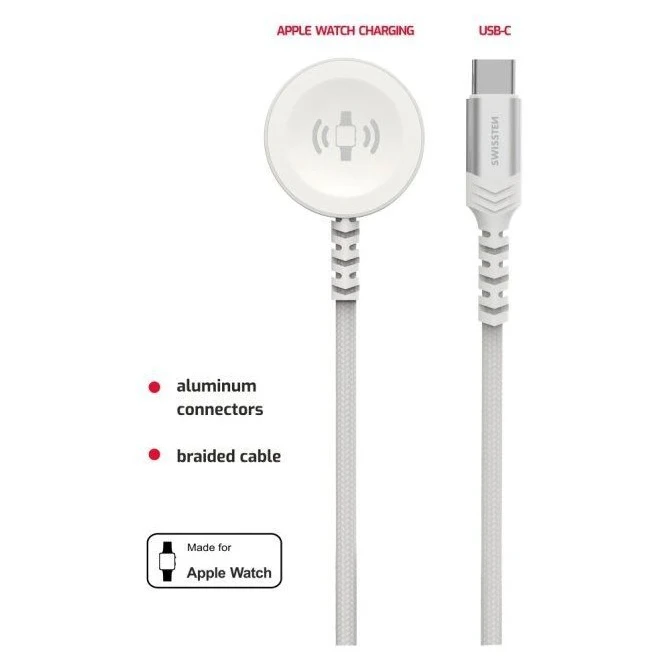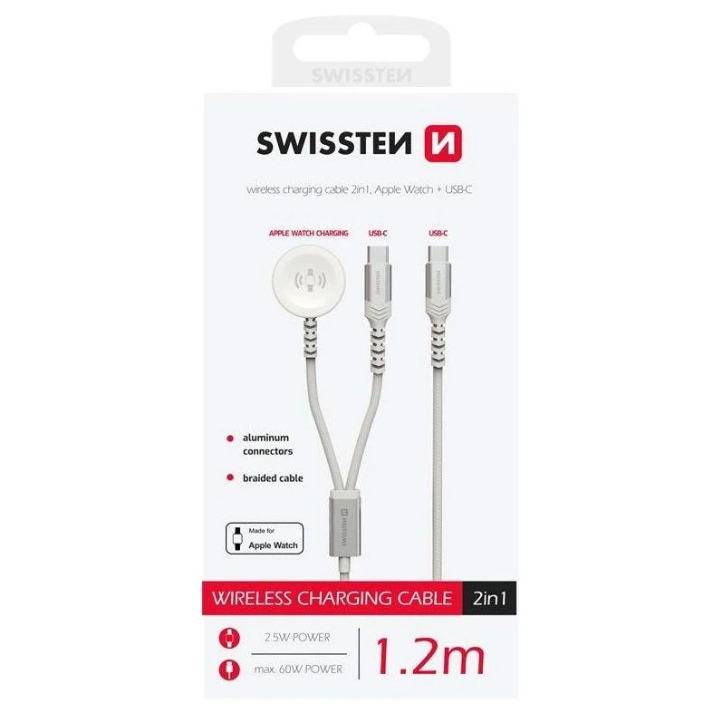 Swissten Wireless charging cable 2in1 for Apple Watch + USB-C 1,2 m