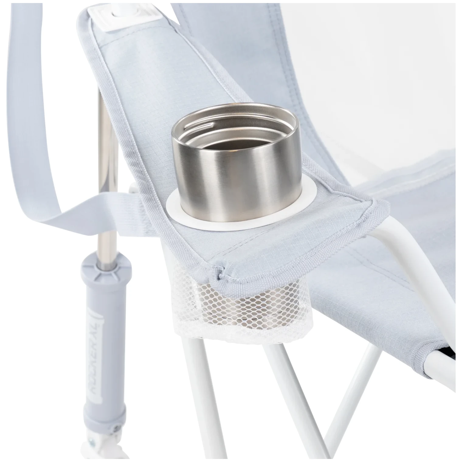 Le cadre en acier robuste avec revêtement en poudre assure stabilité et longévité, tandis que le panneau en maille sur le dossier favorise la circulation de l'air pour que le corps reste à l'aise même pendant les journées chaudes. Le porte-gobelet et la poche latérale gardent vos effets personnels à portée de main, vous permettant ainsi de profiter pleinement de moments de calme sans avoir à vous lever inutilement.