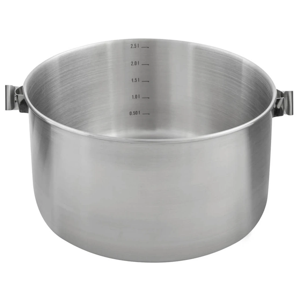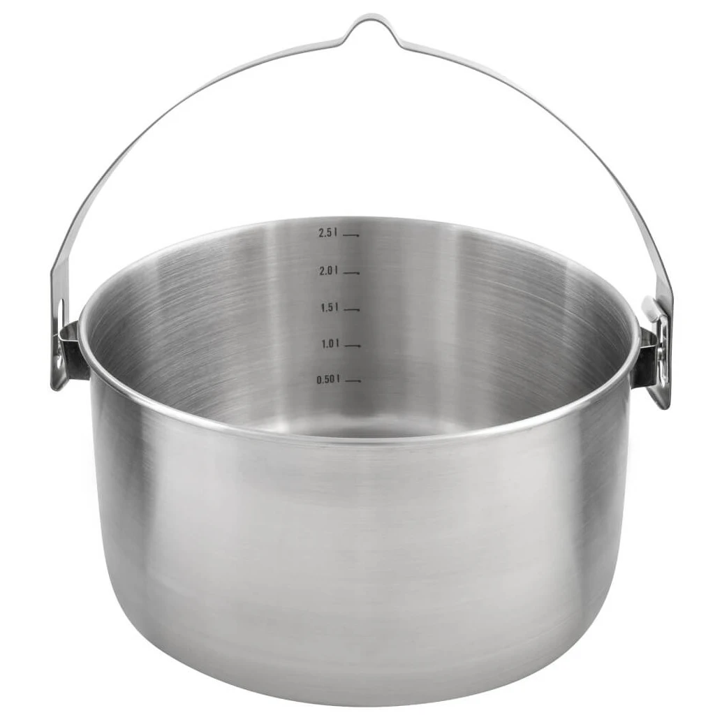 Le couvercle de la bouilloire est doté d'une passoire intégrée qui facilite l'égouttage de l'eau des pâtes ou des légumes. L'intérieur du récipient est doté d'une échelle de mesure, ce qui vous permet de doser précisément l'eau ou les ingrédients selon la recette. Grâce à sa résistance, ses détails astucieux et son volume de 2,5 litres, elle deviendra un assistant fiable lors de tous vos voyages.