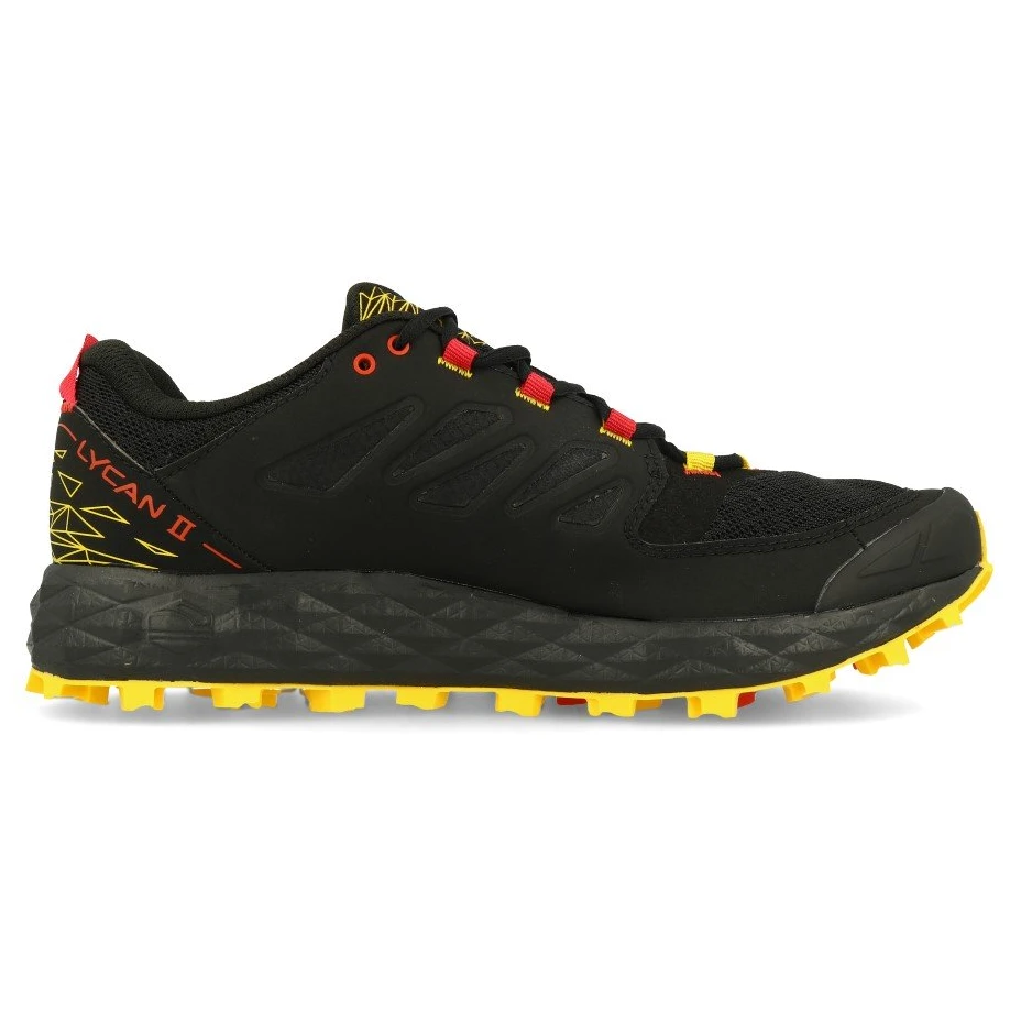 Ultralégères Chaussures de course pour hommes La Sportiva La Lycan II est idéale pour les entraînements de moyenne distance. Le choix idéal pour tous les amateurs de tout-terrain qui aiment le confort. Elle possède une tige en maille respirante avec des renforts en microfibre pour plus de durabilité et un revêtement résistant à l'abrasion. La semelle Frixion Blue antidérapante offre une traction sûre sur tous les terrains, tandis que le TPU offre une protection contre les pierres et les racines.