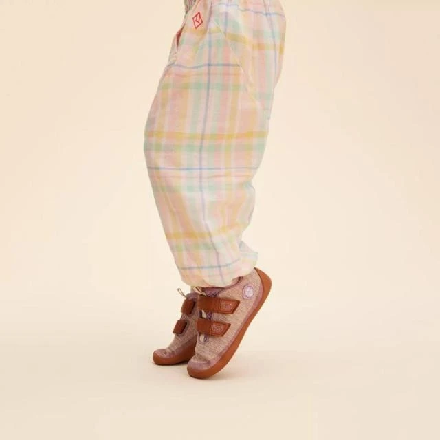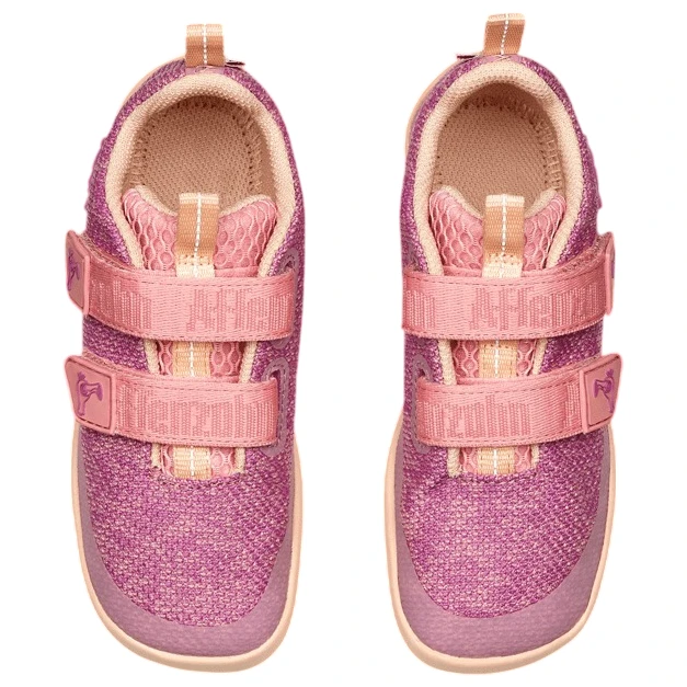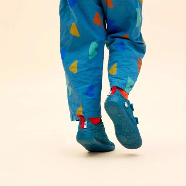 Chaussures barefoot légères en coton biologique respirant avec une semelle extérieure fine et flexible, une fermeture facile et suffisamment d'espace pour la croissance saine des pieds des enfants.