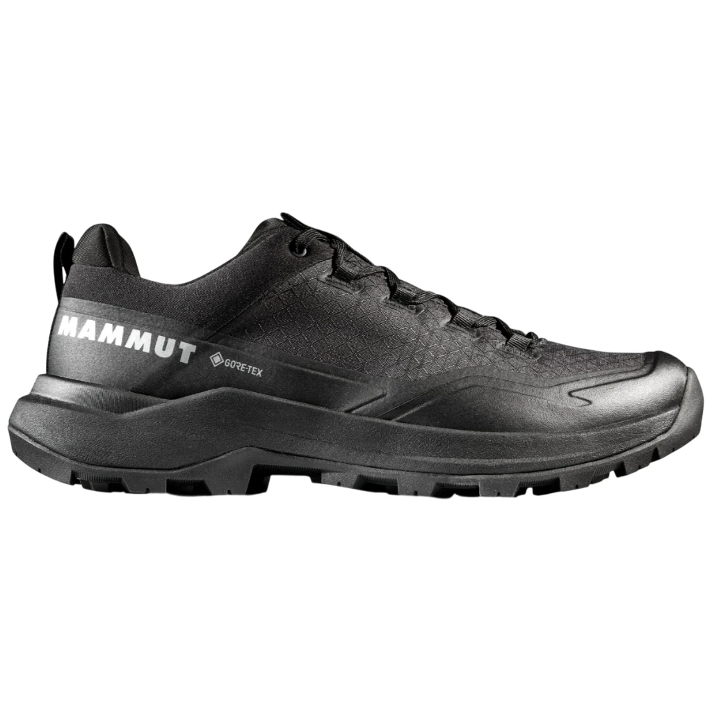 La membrane GORE-TEX aide à garder les pieds au sec, tandis que la semelle Mammut Swiss Design assure une adhérence fiable, même par basses températures. Tige en tissu Double Layer Engineered Mesh, complétée par un textile résistant à l'abrasion et un bord en caoutchouc pour une protection accrue. Le poids de la chaussure est de 390 g en taille UK 8.5, le drop est de 8 mm et la flexibilité correspond à l'indice A5.