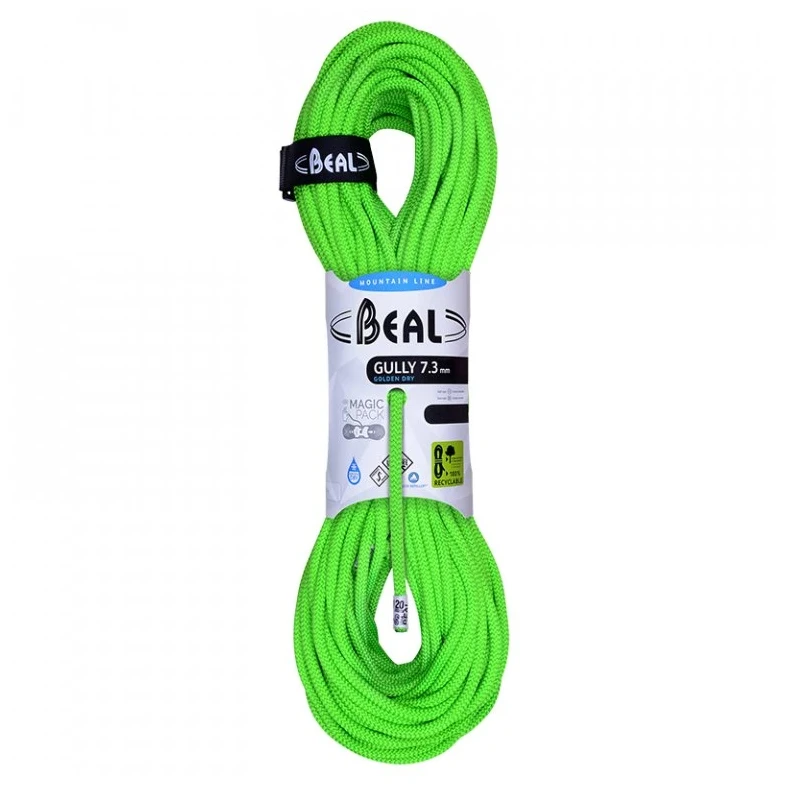 La corde dynamique unique Beal Gully 7,3 mm d'une longueur de 50 mètres et avec un traitement Golden Dry est certifiée comme corde à simple et à double. Spécialement conçue pour l'escalade sur glace. Spécialement conçue pour l'escalade sur glace.