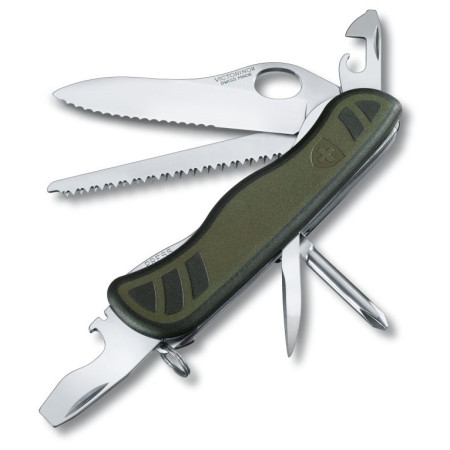 Les couteaux pliants Victorinox sont parmi les meilleurs au monde, et le couteau militaire Swiss Soldier's knife 08 ne fait pas exception. Sa qualité est garantie par une longue tradition et l'utilisation des meilleurs matériaux et technologies. Les lames des deux couteaux sont fabriquées en acier inoxydable au chrome-molybdène de haute qualité, trempé à 56 HRC. Pour une utilisation rapide, le grand couteau est doté d'un grand trou ovale à l'extrémité de la lame pour une ouverture facile et rapide, et les ouvre-bouteilles sont dotés d'une découpe en forme de clou à l'extrémité de la lame. Le couteau est équipé d'un Liner Lock interne pour une manipulation en toute sécurité. La poignée est équipée d'éléments antidérapants en caoutchouc durci pour une prise en main sûre.
