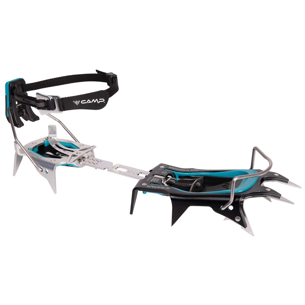 Les crampons légers en aluminium Peak 12 Nanotech - Auto \/ Semi-Auto de la marque Camp sont conçus pour l'alpinisme technique le plus exigeant et les itinéraires de ski de randonnée. L'insert Alleima Nanoflex™ 4 points à l'avant offre un niveau de performance supérieur sur terrain technique.