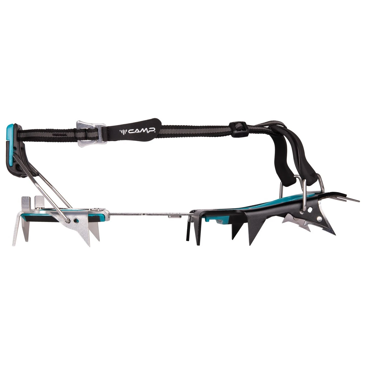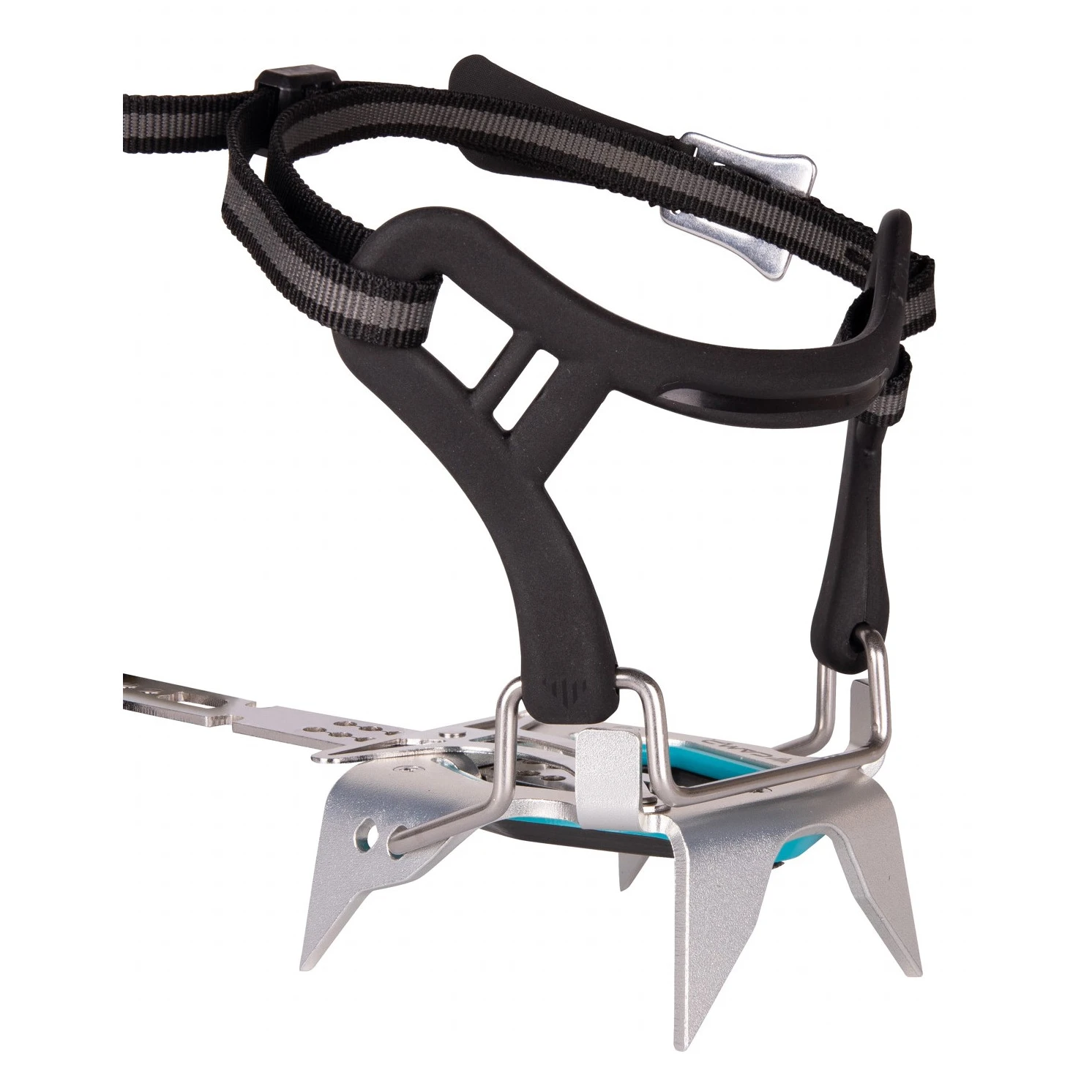 le loquet des sangles sur la barre de connexion permet de plier les crampons