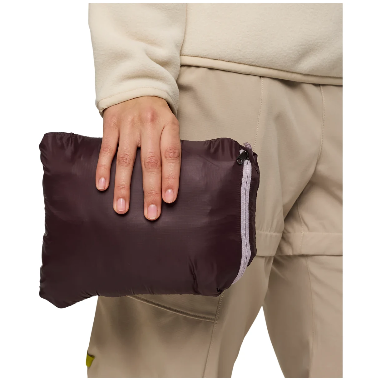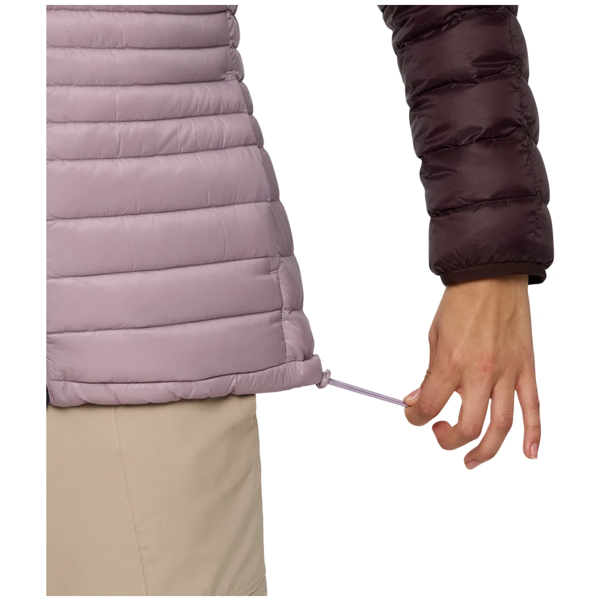 Une protection fiable contre les éléments extérieurs est assurée par un nylon 100 % recyclé résistant, qui est complété par un traitement hydrofuge DWR. Un confort thermique maximal est assuré par un garnissage en duvet de haute qualité avec un pouvoir gonflant de 800 cuin et une certification Responsible Down Standard (RDS), qui garantit que le duvet provient de sources responsables. Les autres avantages comprennent deux poches pour les mains avec fermeture éclair et deux poches intérieures. La fermeture éclair intégrale est dotée d'un rabat de protection à l'intérieur. La capuche ajustée possède une bordure élastique, tout comme les poignets. L'ourlet inférieur est doté de cordons de serrage. L'ensemble de la veste peut être rangé dans une petite poche.