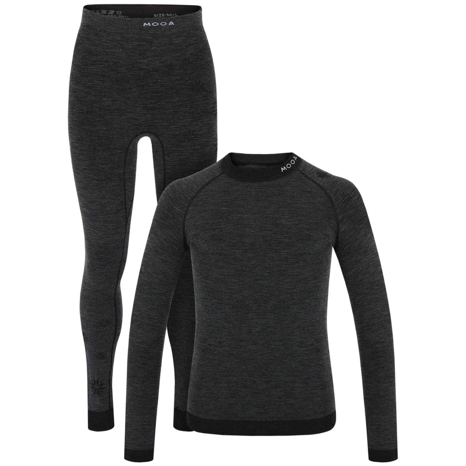 MOOA Mérinos Sans coutures est un ensemble fonctionnel pour hommes conçu comme une première couche pour les activités physiques intenses et le port quotidien, combinant un t-shirt à manches longues et un pantalon de sous-vêtement en un ensemble techniquement coordonné. Les deux parties utilisent une combinaison de laine mérinos et de fibres synthétiques, offrant ainsi un confort élevé, une élasticité et une fonctionnalité fiable lors des activités physiques intenses et du port quotidien. Le matériau très élastique s'adapte parfaitement à la forme du corps et l'épouse agréablement.