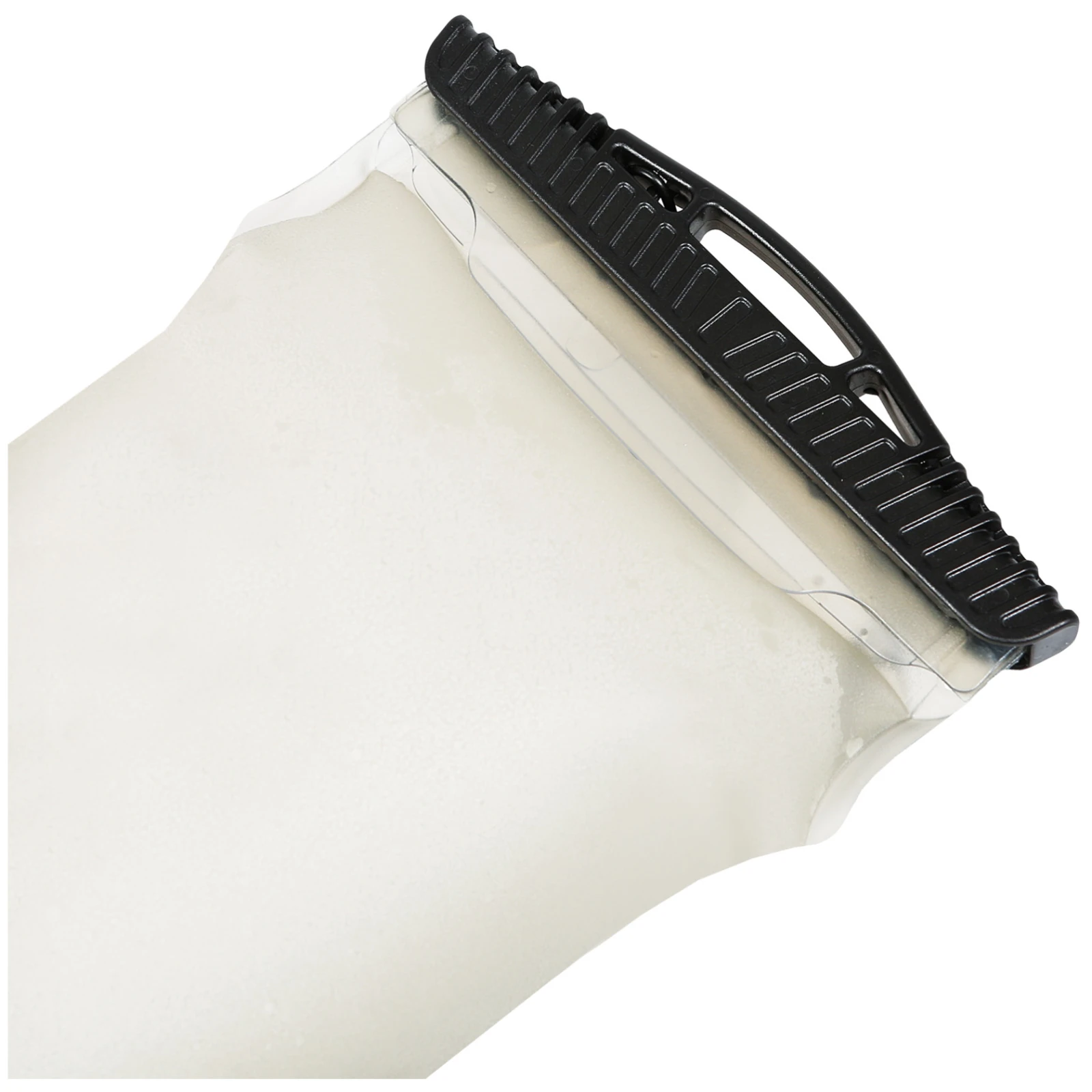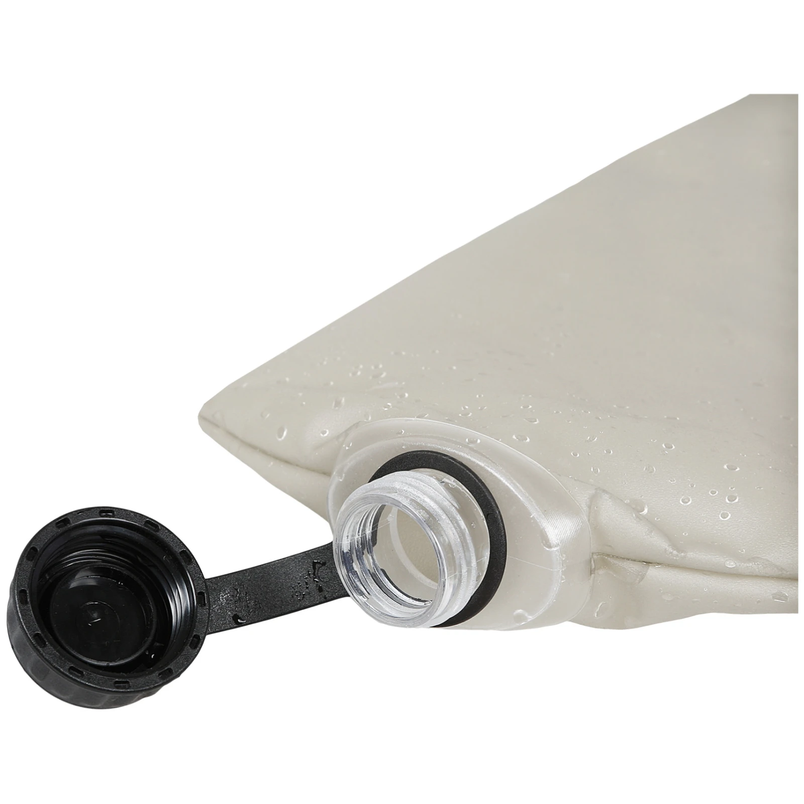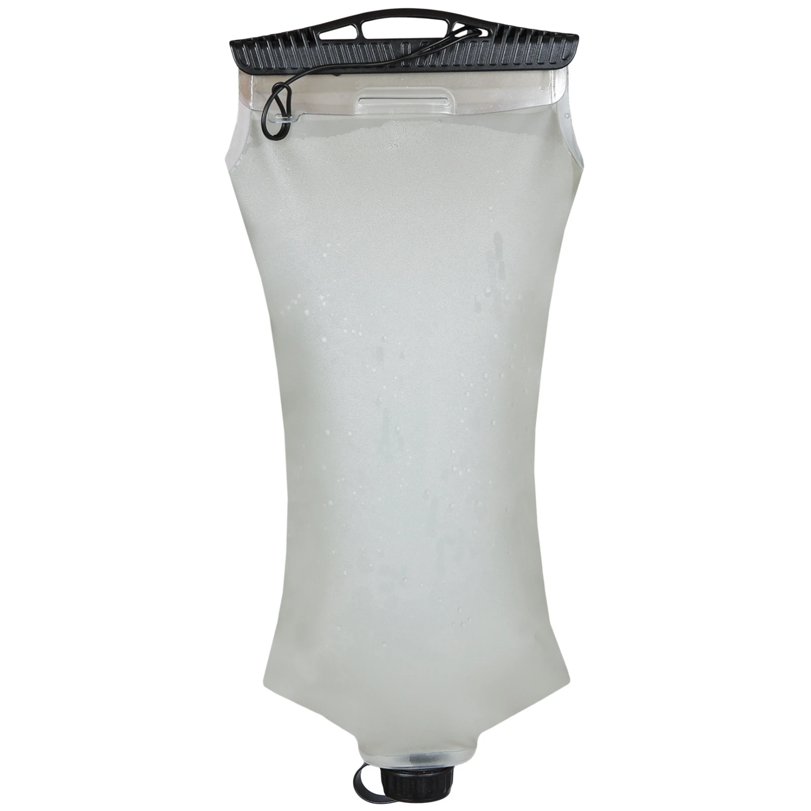 La bouteille est fabriquée en matériau 100 % TPU, qui est flexible, résistant et sans BPA, ce qui la rend adaptée à une utilisation répétée et aux conditions les plus exigeantes. Une fois vide, elle peut être facilement pliée et prend un minimum de place, ce qui est appréciable lors du transport dans un sac à dos. Une face de la bouteille est équipée d'un large goulot avec fermeture à glissière, permettant un remplissage et un nettoyage faciles. Le curseur est également doté d'un anneau de suspension. De l'autre côté, il y a un bouchon du diamètre d'une bouteille PET classique, qui est compatible avec les filtres Sawyer. Cela permet d'utiliser la bouteille pour filtrer l'eau sur le terrain, ce qui augmente sa praticité lors des activités de plein air.