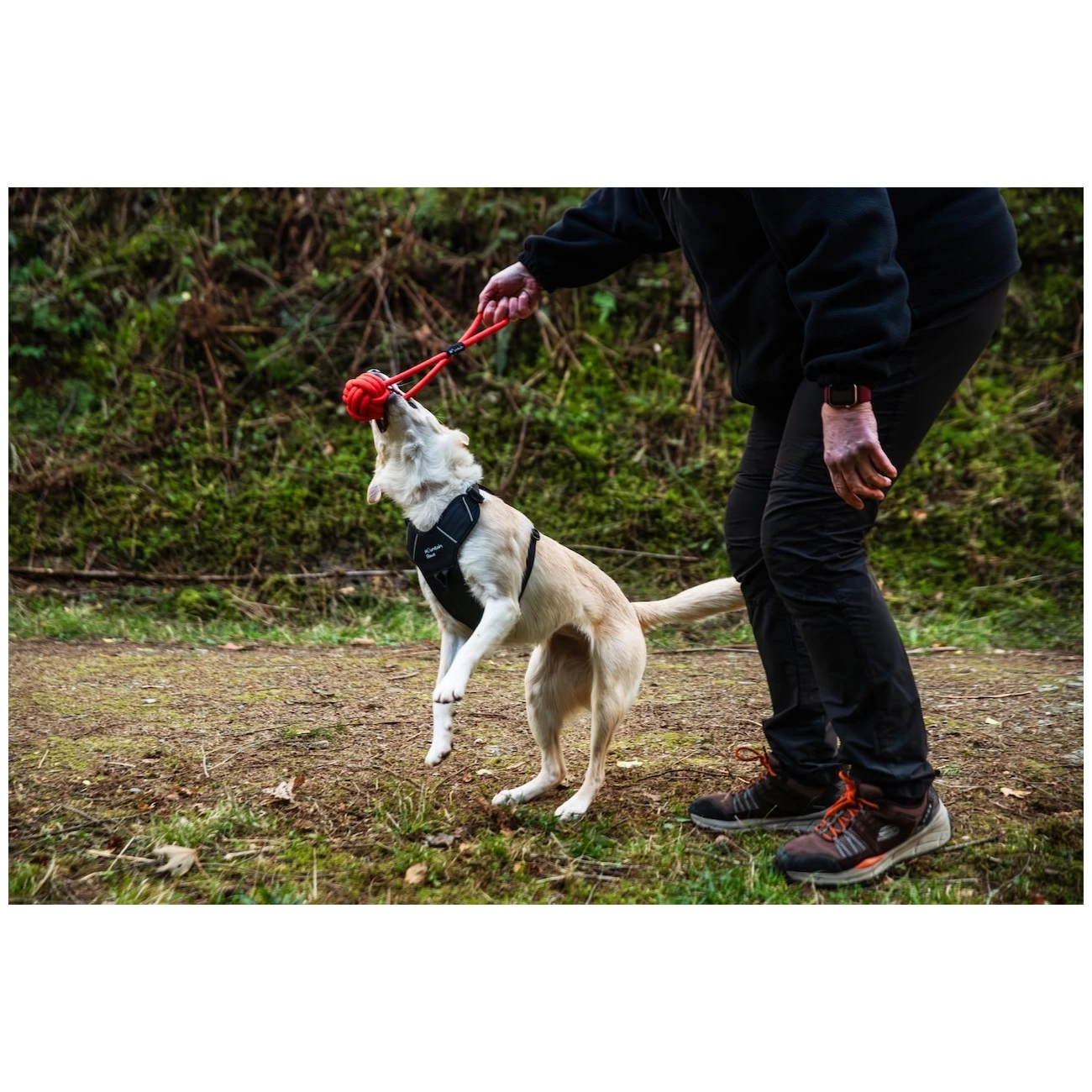 Jouet résistant Balle à mâcher et corde pour chien de la marque Mountain Paws est conçu pour les mordeurs et tireurs passionnés.