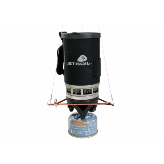 Le système de suspension Jetboil est compatible avec tous les systèmes Jet Boil (Zip, Flash, Flashlite, MicroMo, MiniMo, Sumo), ainsi qu'avec la poêle et la marmite.