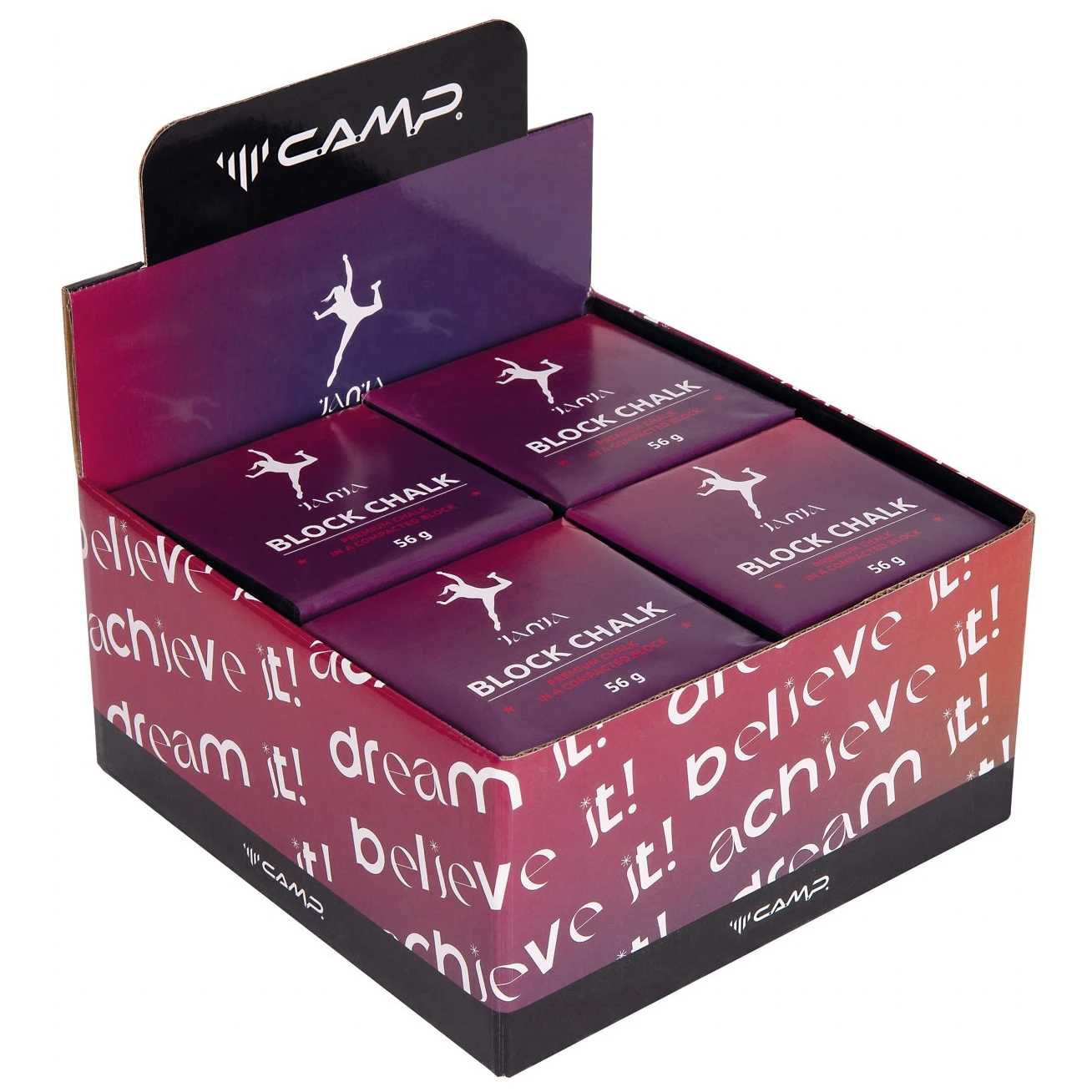 Gamme exclusive de magnésie de qualité supérieure super sèche Camp bloc de magnésie spécifique Janja en bloc de 56g. Cette mage est idéale pour l'escalade, l'escalade de bloc, l'escalade multi-pitch et l'escalade sportive.