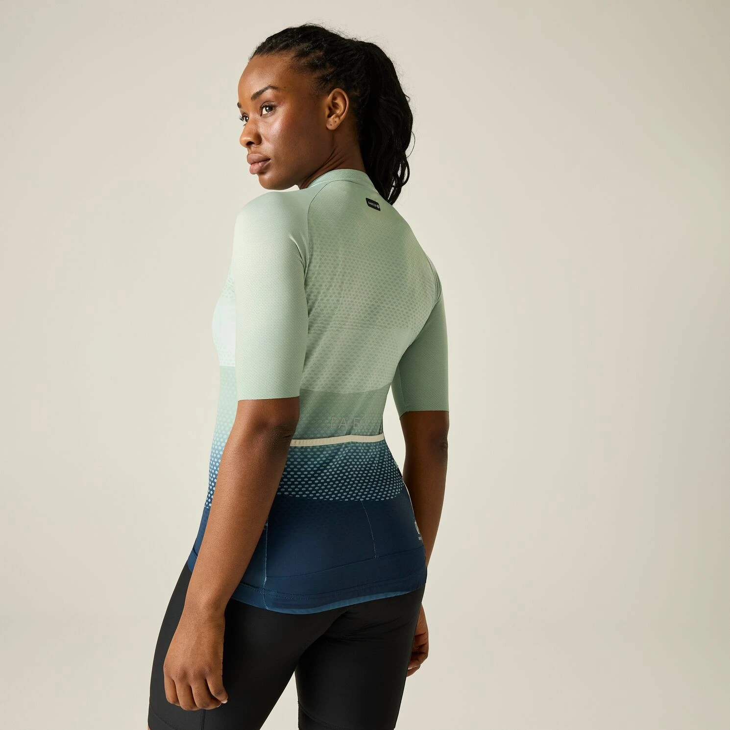 La fermeture éclair entièrement ouvrable permet une régulation facile de la température, le dos long avec une bande élastique assure la stabilité en position de conduite et les poignets découpés au laser contribuent à une finition lisse et aérodynamique. Les poches arrière pratiques sont complétées par des détails réfléchissants Stay Seen pour une meilleure visibilité et une protection UV UPF 50+ protège lors de la conduite au soleil.