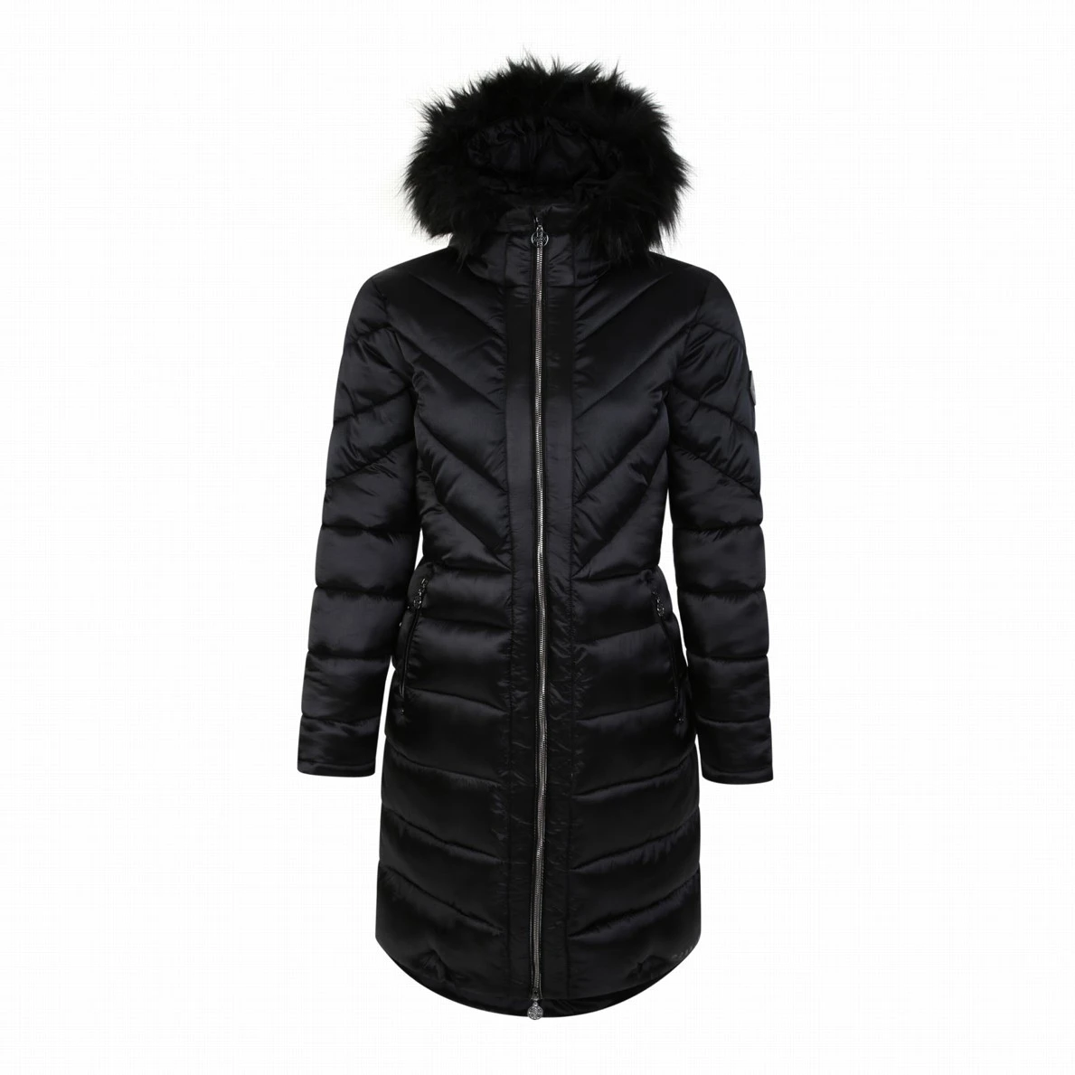 Le manteau pour femme Suppression Long Jk de la marque Dare 2b est long et matelassé, fabriqué dans un tissu ultra léger. Le rembourrage intérieur est fabriqué à partir de matériaux recyclés et vous garde ainsi au chaud même pendant les jours de gel. La capuche ajustée est bordée d'une fausse fourrure douce, amovible pour un entretien facile. Le manteau est cintré et présente une silhouette élégante. La fermeture à glissière complète à double sens est recouverte d'un rabat intérieur et les poignets intérieurs gardent les mains bien au chaud. Le manteau est également doté de poches zippées à effet métallique.