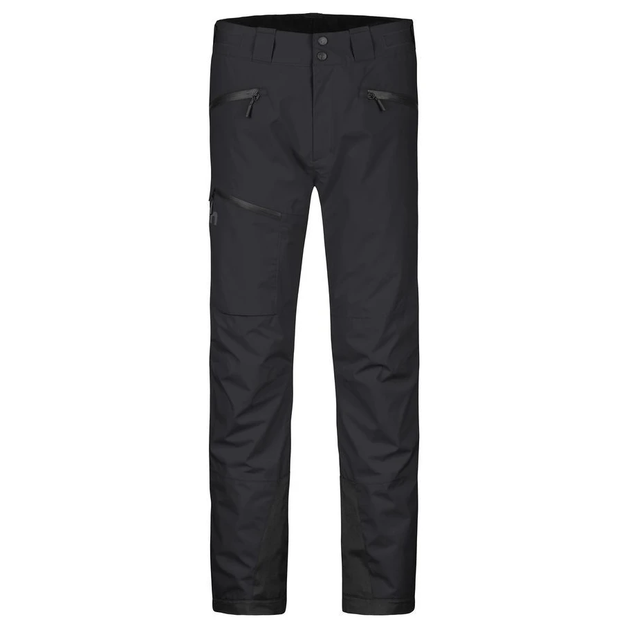 Le pantalon a une coupe technique avec des genoux préformés anatomiques et une taille haute pour un ajustement parfait et une liberté de mouvement. Les détails pratiques comprennent des poches principales avec des fermetures éclair imperméables, une poche zippée sur la cuisse, des ventilations à l'extérieur des jambes, une guêtre pare-neige et une fente zippée en bas de la jambe. Les coutures étanchées et les détails collés assurent une protection contre la pénétration de la neige et de l'humidité, tandis que le réglage de la taille par une ceinture avec élastique et velcro permet un ajustement parfait.