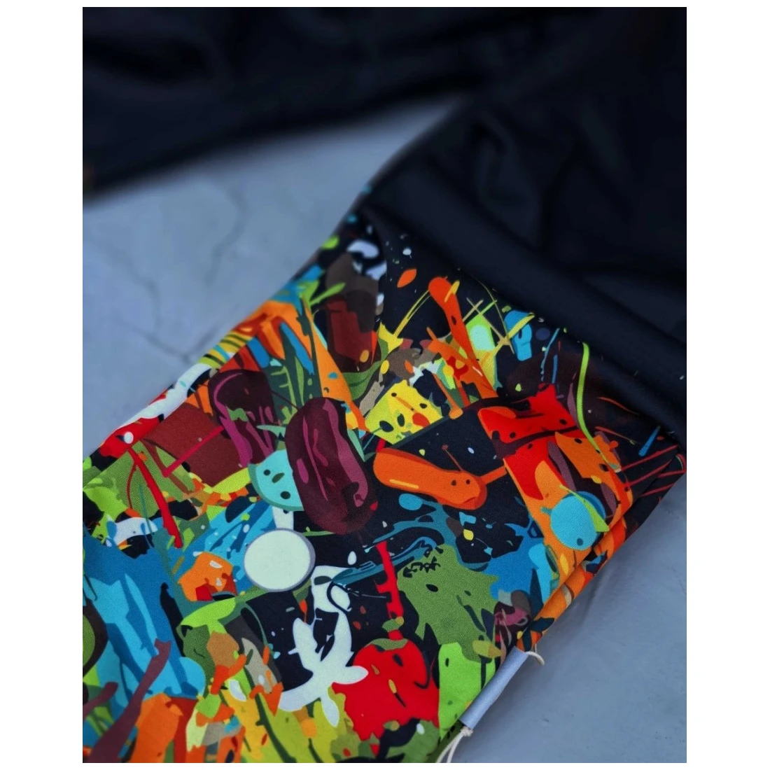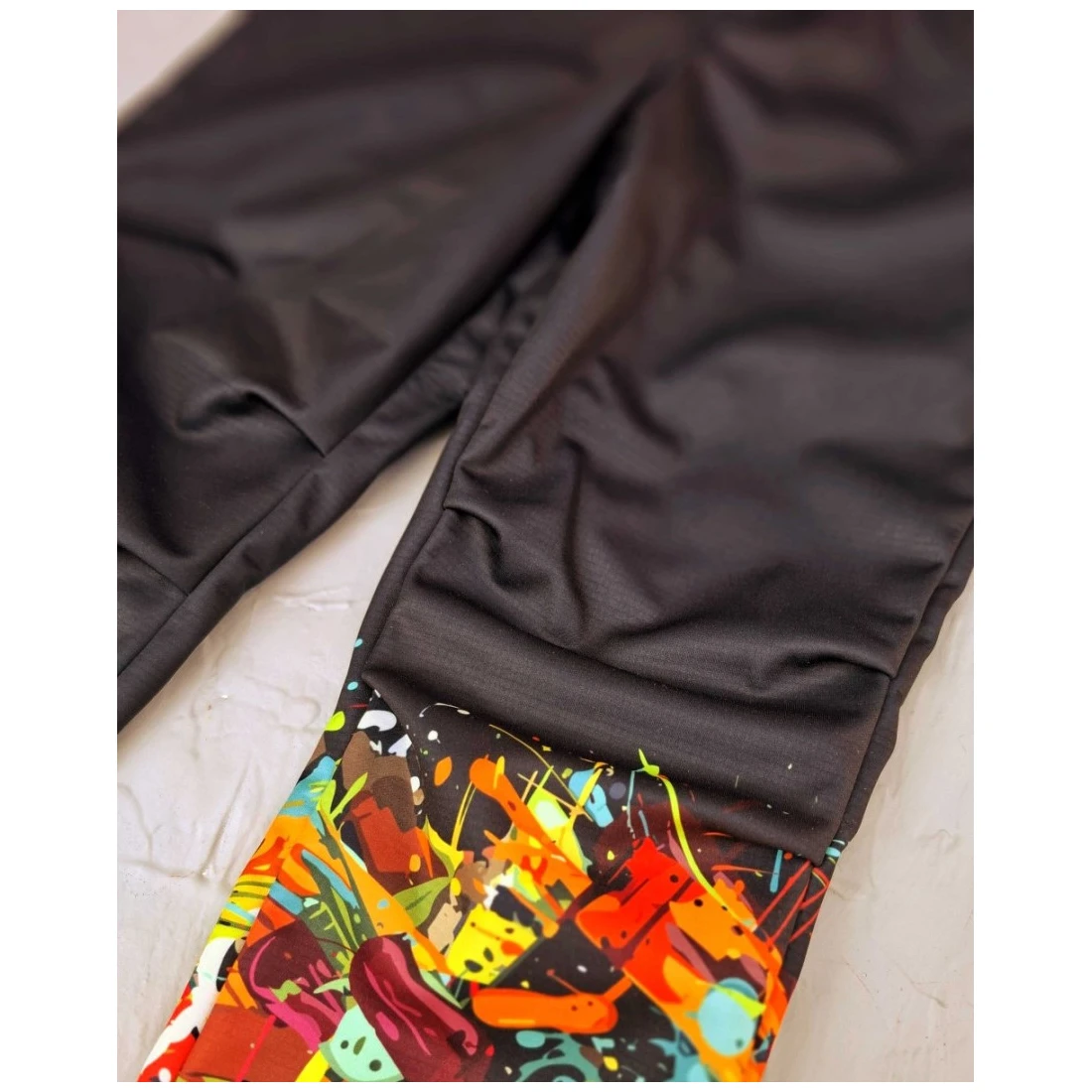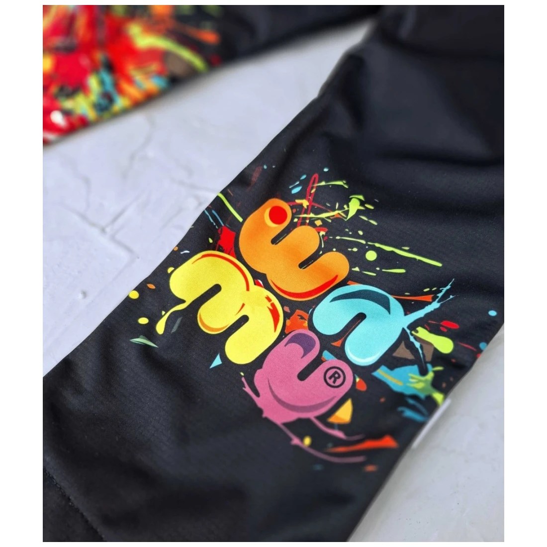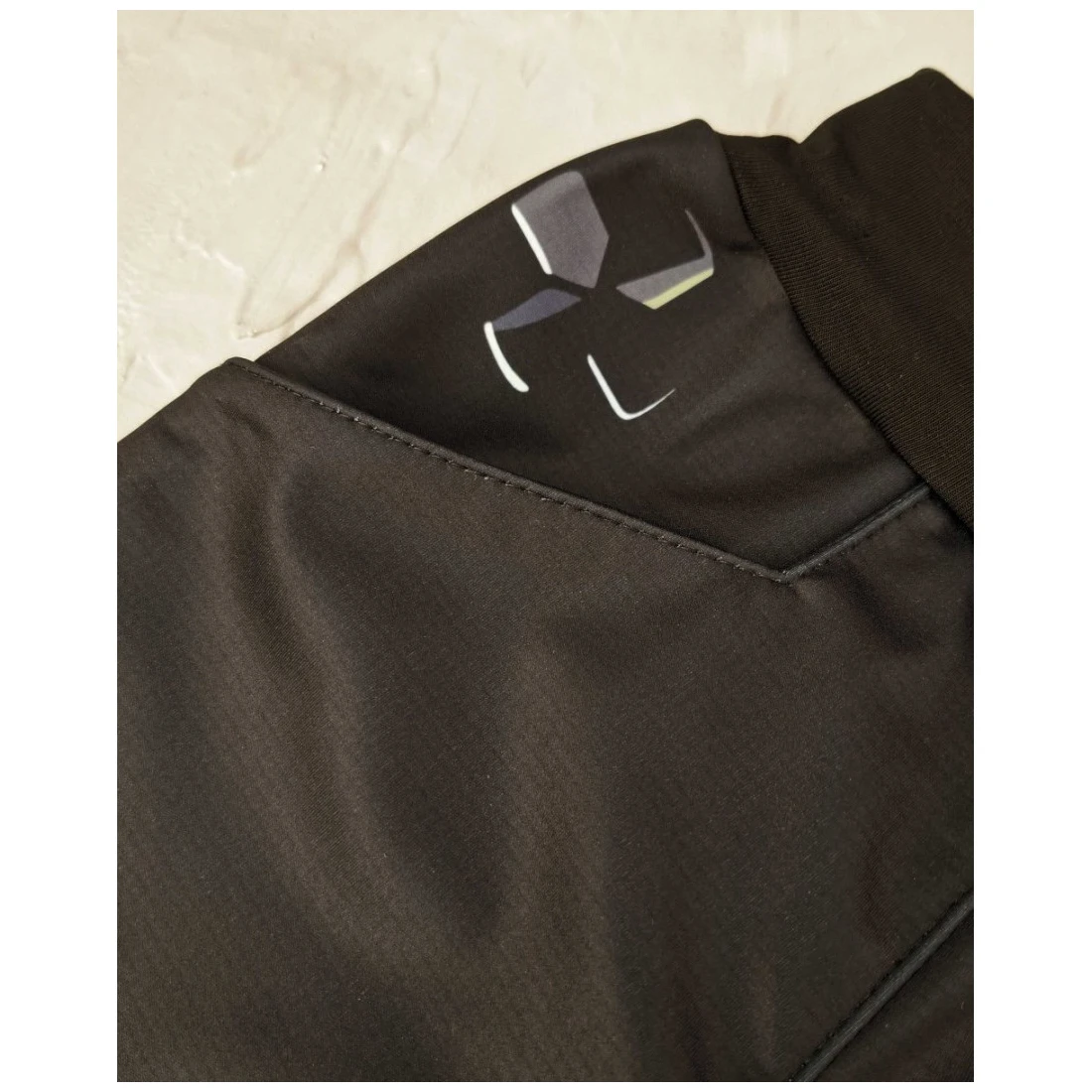 Les designs uniques sont imprimés sur du softshell par impression par sublimation, ce qui entraîne une compression à haute pression du matériau. Le softshell peut alors temporairement sembler plus fin. Malgré cela, le matériau reste adapté aux conditions météorologiques froides. L'épaisseur du matériau revient à son état d'origine après le premier lavage.