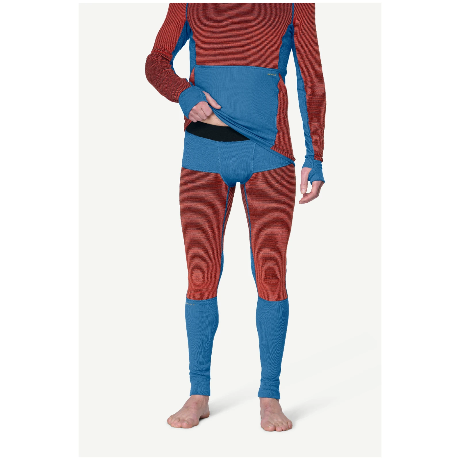 La laine mérinos, à partir de laquelle le caleçon est fabriqué, assure une régulation naturelle de la température, réchauffe même lorsqu'elle est humide et résiste naturellement aux odeurs. Grâce à la lanoline contenue dans les fibres, le matériau a une capacité autonettoyante : il suffit souvent d'aérer le caleçon au lieu de le laver. La laine provient de sources éthiques, est mulesing-free et Devold contrôle l'ensemble du processus, de la tonte des moutons à la confection des produits, directement en Europe.
