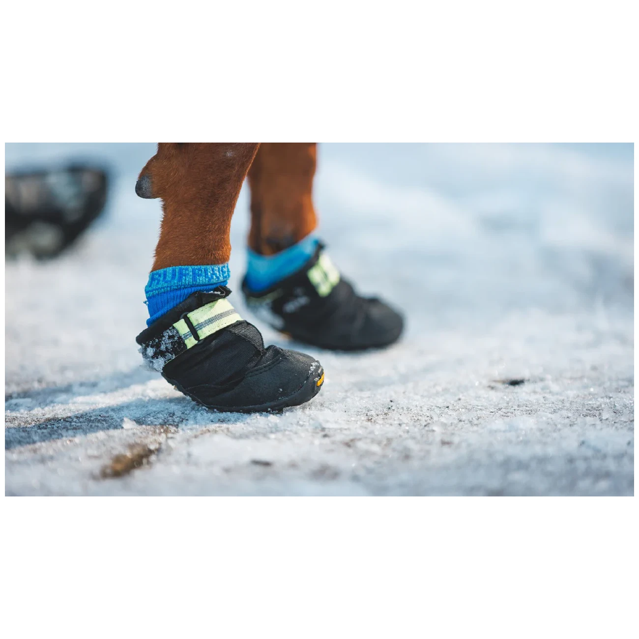 Elles sont fabriquées dans un tricot technique dont la forme épouse l'anatomie des pattes de chien. Ce matériau évacue l'humidité, sèche rapidement et prévient les éventuelles abrasions ou macérations. La manchette resserrée maintient les chaussettes en place, même lors de mouvements actifs, et ce, même si le chien a des poils longs. La chaussette facilite également l'enfilage des bottes.