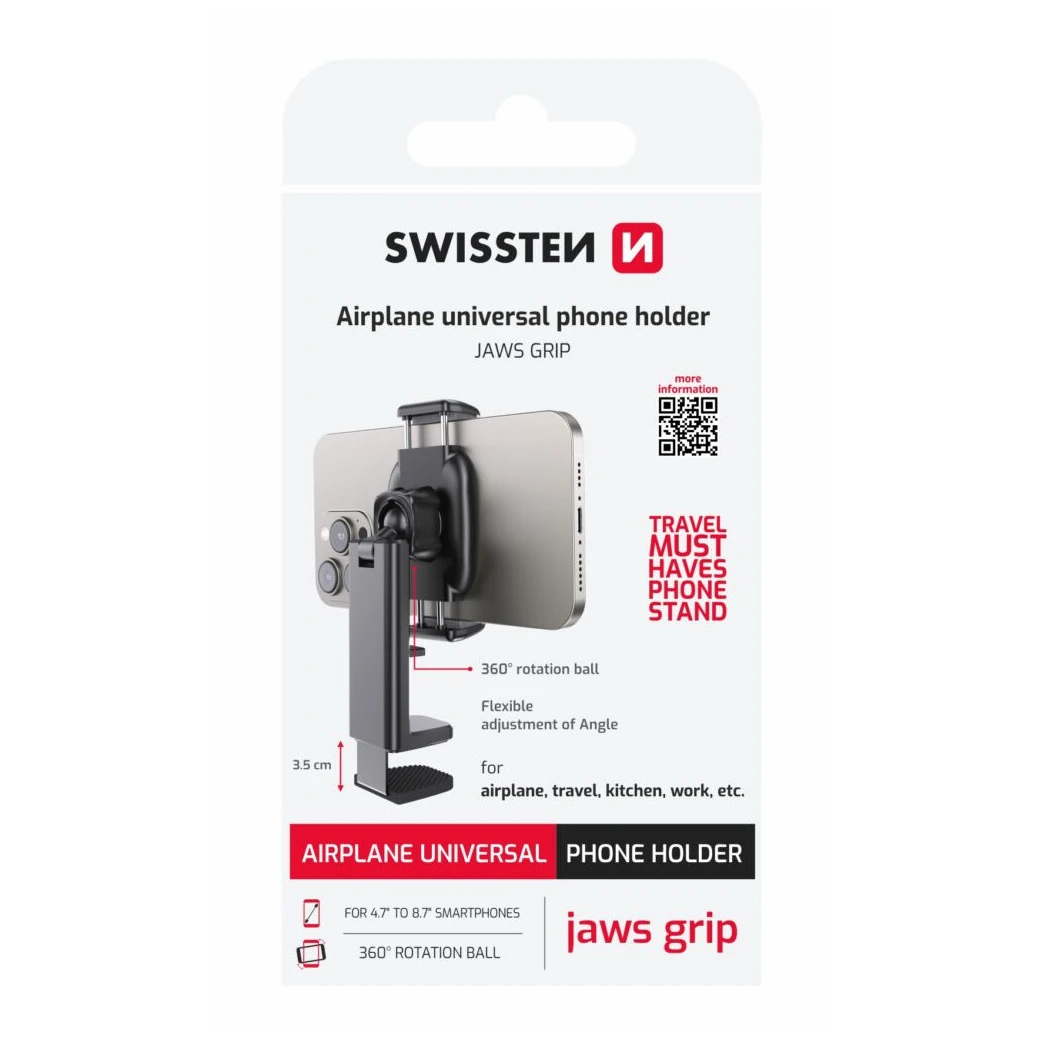 Le support universel pour smartphone Swissten avec fixation à mâchoires offre une solution pratique et stable pour regarder des vidéos confortablement, passer des appels vidéo et utiliser votre téléphone en mains libres à la maison, au bureau ou en déplacement.