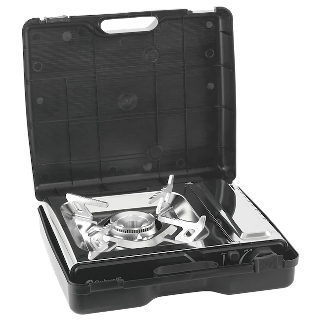 Le brûleur a une puissance allant jusqu'à 2200 W, un bouton de commande rotatif en zinc pour une régulation progressive et un allumage piézoélectrique. Il dispose d'un espace intégré pour la cartouche de gaz MSF-1A. Le réchaud est facile à transporter grâce à son robuste étui de voyage.