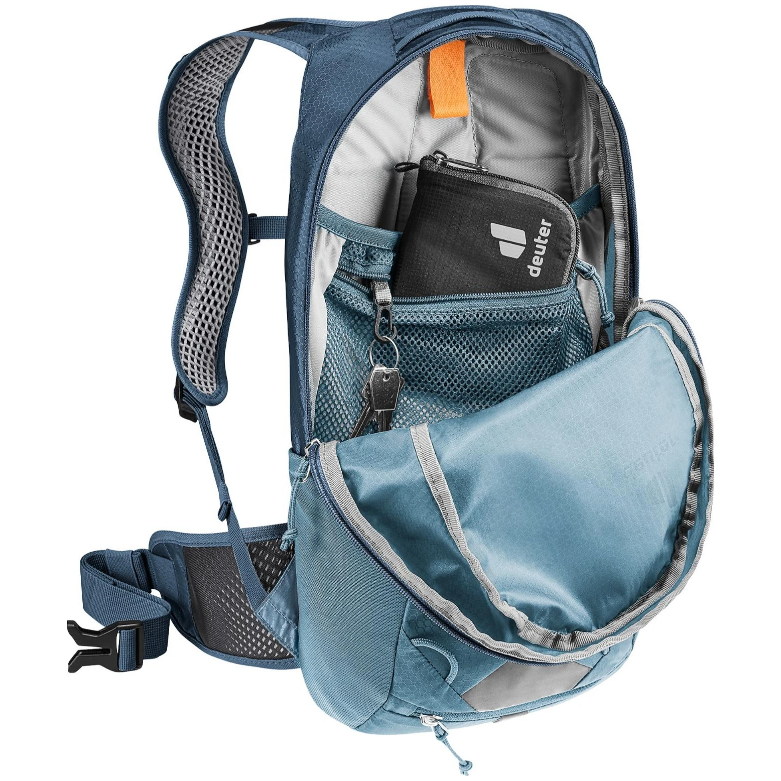 Ce sac à dos de vélo Deuter Race 8 raccourci, doté d'un bon rapport poids/confort, bénéficie du système dorsal respirant Deuter Airstripes. Il assure une bonne circulation de l'air, en particulier dans les descentes et les montées techniques, ce qui est apprécié par tous les cyclistes. La sangle de sternum et les ailerons de hanche en maille de la ceinture abdominale confèrent au sac une stabilité supplémentaire, qui se répercute sur la tenue du sac. Avec un tissu approuvé bluesign®, il est fabriqué à partir de matériaux 100 % recyclés. Le sac à dos répond ainsi aux normes environnementales les plus strictes, est neutre sur le plan climatique et ne contient pas de PFC.