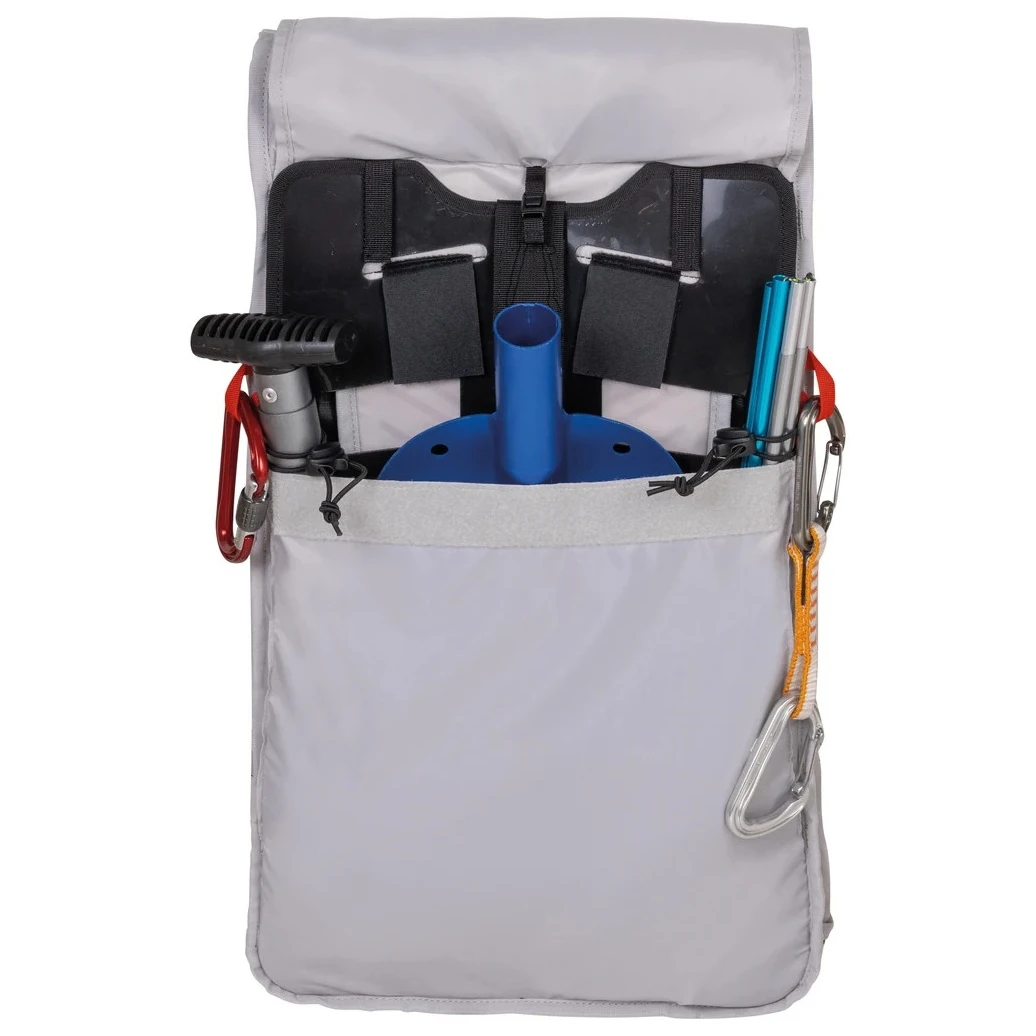 Le système dorsal rembourré avec des perforations favorise parfaitement la circulation de l'air et réduit la transpiration. Les bretelles et la ceinture sont également perforées. L'ensemble du système est recouvert d'une maille qui ménage les vêtements, par exemple les vestes imperméables. La fermeture du sac à dos est conçue avec une fermeture à glissière à double sens en combinaison avec le soi-disant. Le système étanche Roll Up, qui se fixe à l'aide de boucles et de sangles latérales, permet de régler la hauteur du sac à dos.