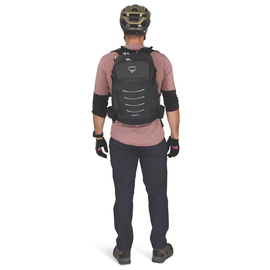 Osprey Syncro 20 est le choix idéal pour le cyclisme, le gravel et les sorties rapides sur sentier, lorsque vous avez besoin d'un sac à dos compact avec suffisamment d'espace pour l'équipement essentiel. Le volume de 20 litres offre de la place pour les outils, une veste légère et des collations, sans que le sac à dos ne limite vos mouvements.