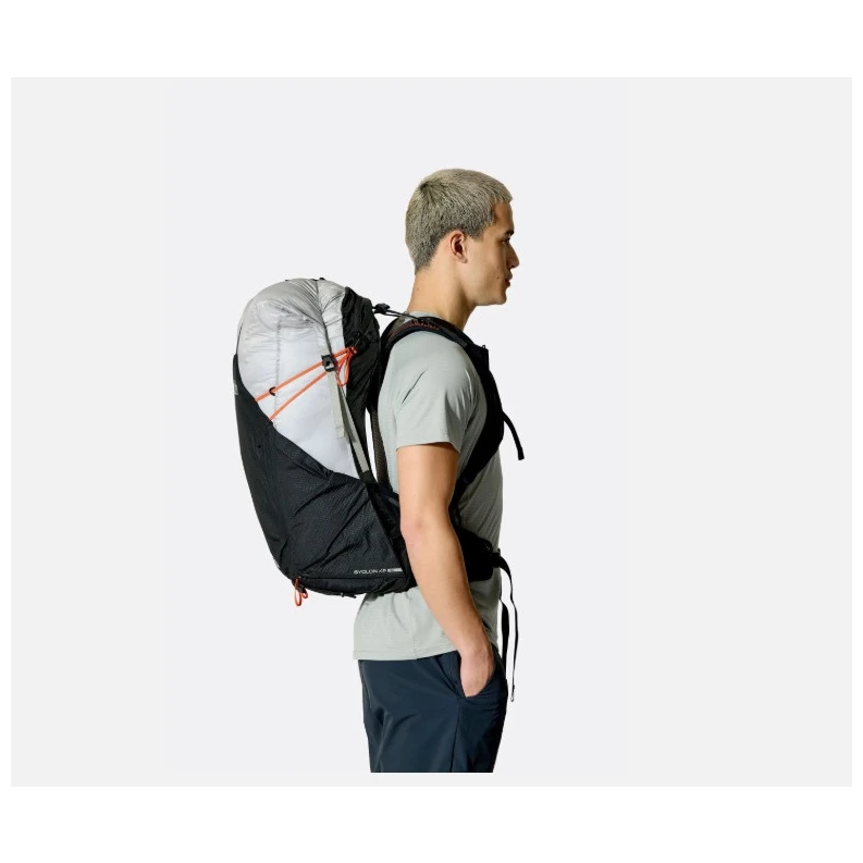Le sac à dos est équipé du système dorsal AEROFIT™, qui s'adapte à la forme du corps tout en permettant une ventilation efficace du dos pendant le mouvement. Cela vous permet de rester à l'aise, même à un rythme soutenu ou lors de longues ascensions. L'entrée enroulable permet d'adapter le volume à la quantité d'équipement actuelle tout en augmentant la protection du contenu.