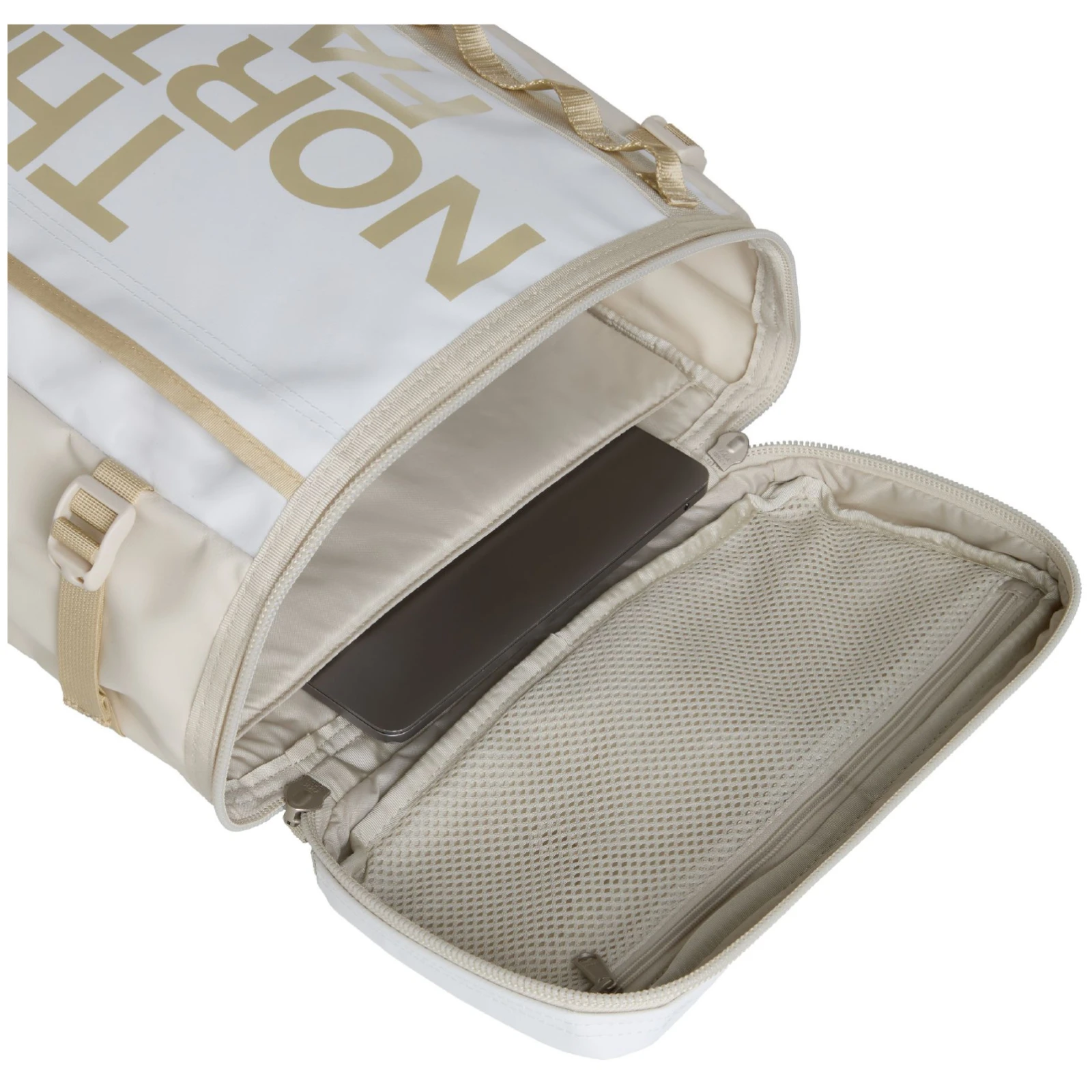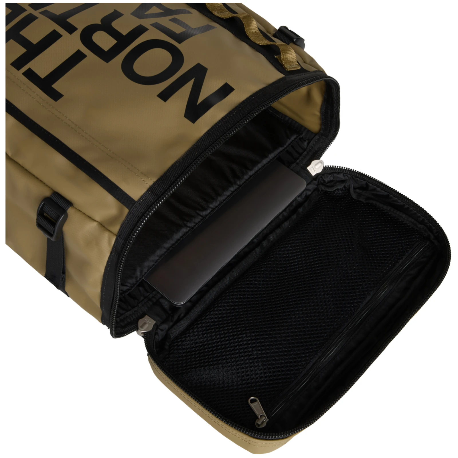 Il est fabriqué dans un matériau extrêmement durable et rigide Base Camp. Il est doté d'un panneau dorsal et de bretelles rembourrés, ainsi que d'une ceinture thoracique, ce qui le rend confortable à porter. Le sac à dos se remplit par le haut grâce au grand couvercle, ce qui permet de bien voir le contenu. Il s'ouvre à l'aide d'une fermeture à glissière munie de larges boucles. L'intérieur comporte une poche arrière cachée pour smartphone, une poche zippée pour tablette, un porte-bouteille interne, une pochette matelassée pour ordinateur portable jusqu'à 15", une pochette filet interne zippée avec clip pour clés et une autre pochette interne. A l'extérieur, il y a une poche zippée et des poignées faites de sangles auxquelles vous pouvez attacher d'autres objets. Les sangles de compression latérales permettent d'ajuster facilement le volume global.