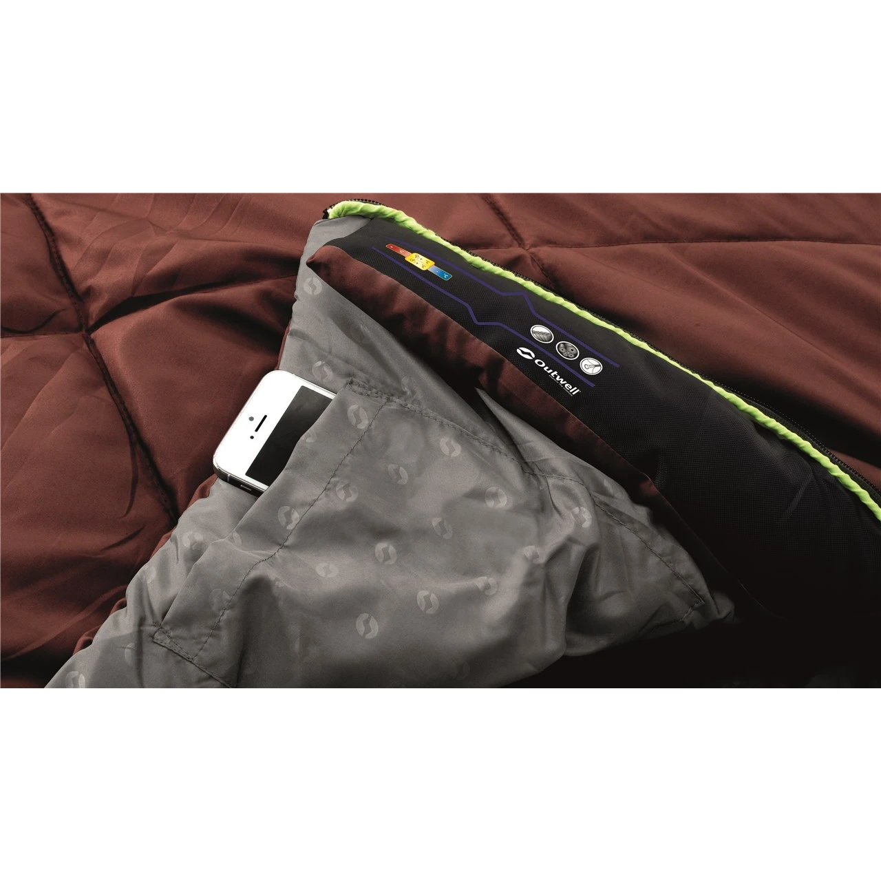 Sac de couchage couverture Contour de la marque danoise Outwell garantira un sommeil agréable au camp, qui sera certainement à la hauteur du confort de la maison. Le sac de couchage est rempli de fibres creuses Isofill, avec des fibres de polyester traitées à l'intérieur et à l'extérieur.