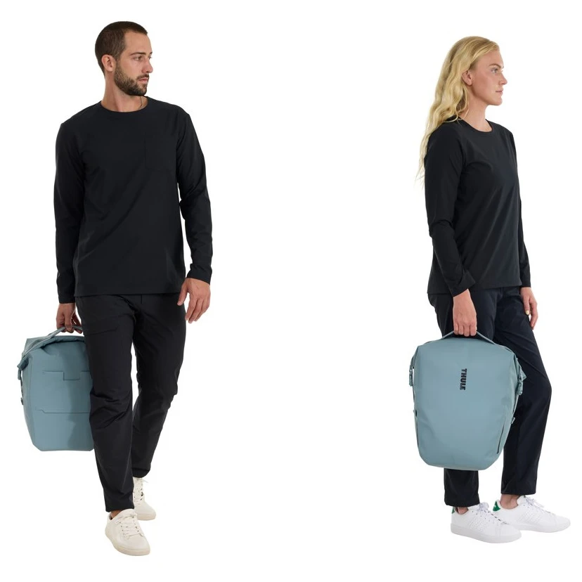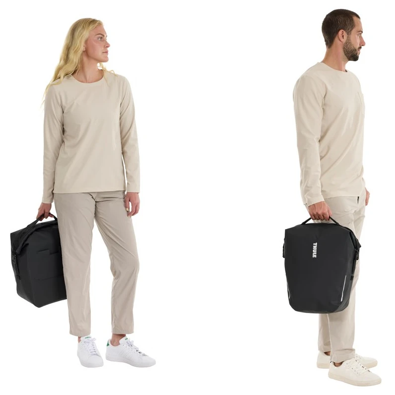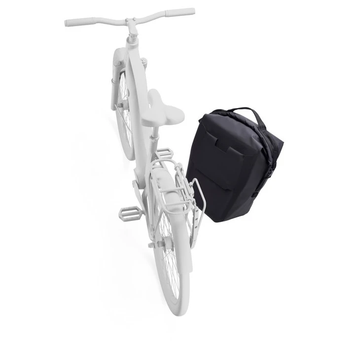 Sacoche de vélo Shield Pannier 22L de la marque Thule avec fermeture à enroulement, offre des matériaux imperméables et un design élégant, ce qui la rend confortable à porter même en dehors du vélo. La construction certifiée IPX4 protège vos objets de valeur, tandis que les détails réfléchissants améliorent la visibilité sur la route.