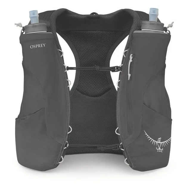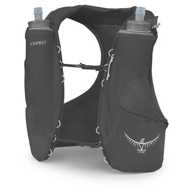 Le sac est livré avec des flasques souples de 500 ml, placées à l'avant pour un accès rapide pendant la course. Grâce à sa coupe ajustée et à son système de réglage, il tient fermement sur le corps et minimise les rebonds, même lors de mouvements dynamiques.