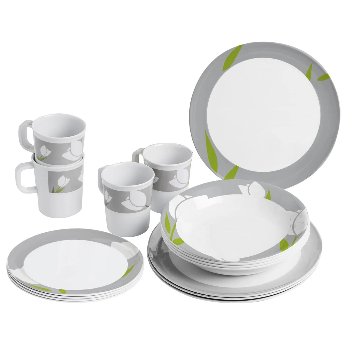 La vaisselle Melamine Set Tulip de la marque Brunner contient l'équipement de base pour le camping. Le set se compose de 16 pièces et convient pour 4 personnes. Au camping, vous apprécierez la durabilité accrue grâce à la mélamine. Ce matériau est résistant aux chocs, facile à nettoyer, résistant à la chaleur et à l'humidité, inodore et insipide, et respectueux de l'environnement. La vaisselle peut être mise au congélateur et au lave-vaisselle.