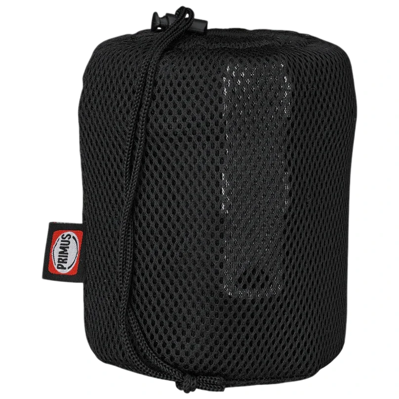 Pour un rangement facile, un sac en filet est inclus, dans lequel la vaisselle est emballée. L'ensemble s'emboîte parfaitement, ce qui permet d'économiser de l'espace dans le sac à dos et simplifie le transport. Le réchaud et le gaz ne sont pas inclus dans la livraison.