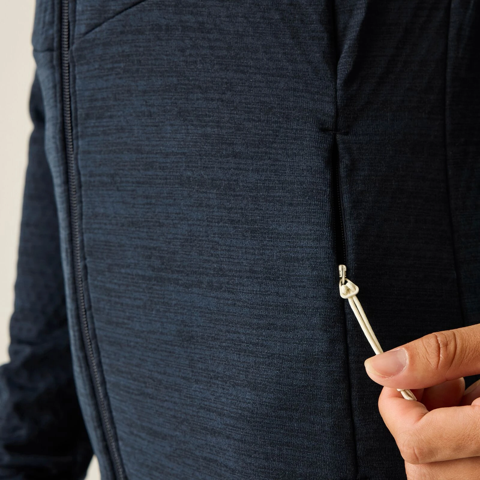 Le tissu extensible ILUS avec doublure en polaire thermique offre un confort thermique optimal et une liberté de mouvement. Le matériau composé à 94 % de polyester recyclé et à 6 % d'élasthanne est agréable au toucher et, grâce à son grammage de 230 g/m², offre un équilibre idéal entre chaleur et respirabilité.