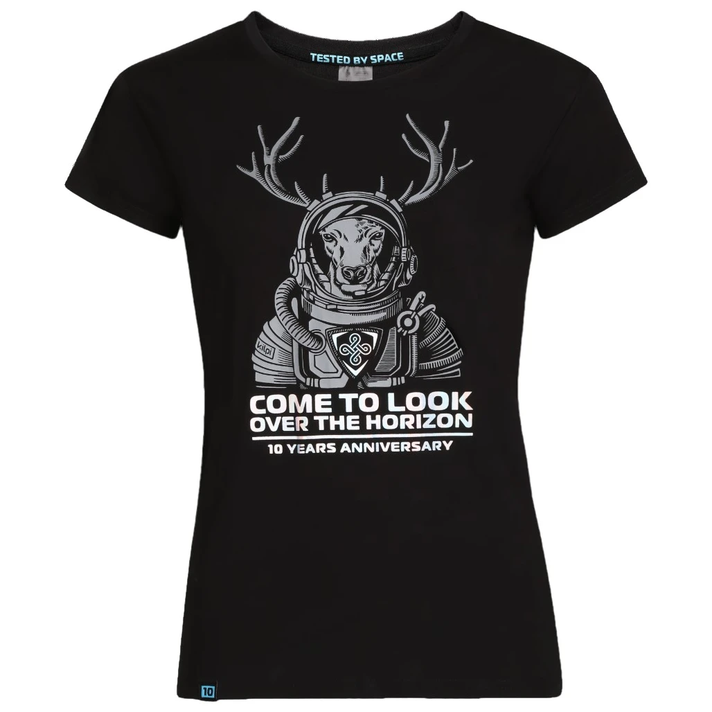 Kilpi Calypso-W est un t-shirt en édition limitée pour le 10e anniversaire de la marque Kilpi. Ce T-shirt à manches courtes pour femme est fabriqué dans une matière OPTI-DRY très confortable, légère et respirante. Il est imprimé d'un motif original de renne astronaute qui symbolise la vision de la marque.