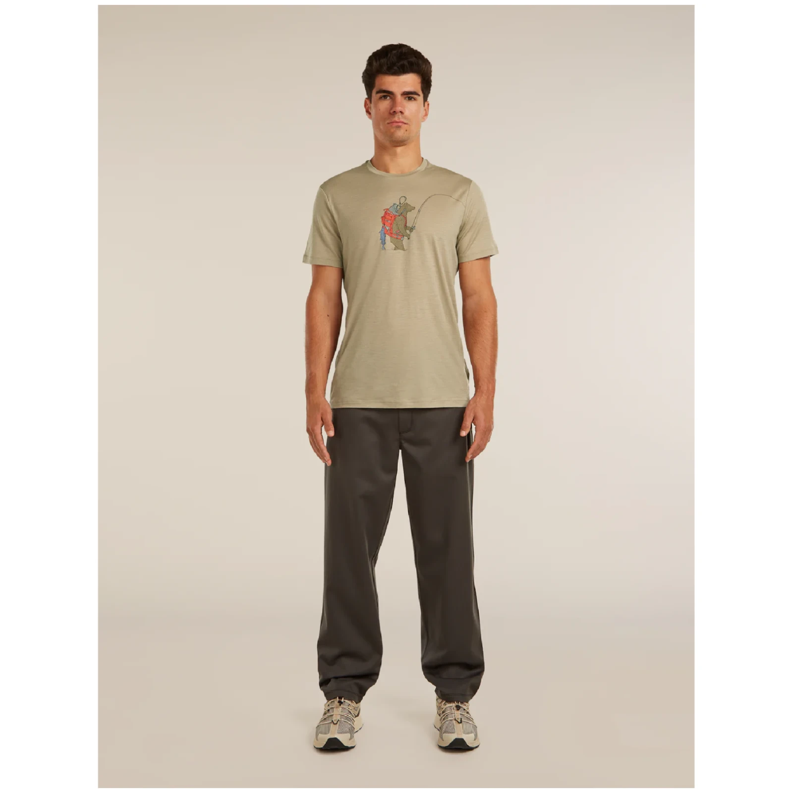 La coupe standard offre un équilibre entre confort et liberté de mouvement. Les coutures d'épaules décalées aident à réduire les frottements, par exemple lors du port d'un sac à dos. Le graphique original avec un motif d'ours donne au t-shirt un style personnel, tandis que le matériau naturel sans fibres synthétiques souligne son caractère durable.