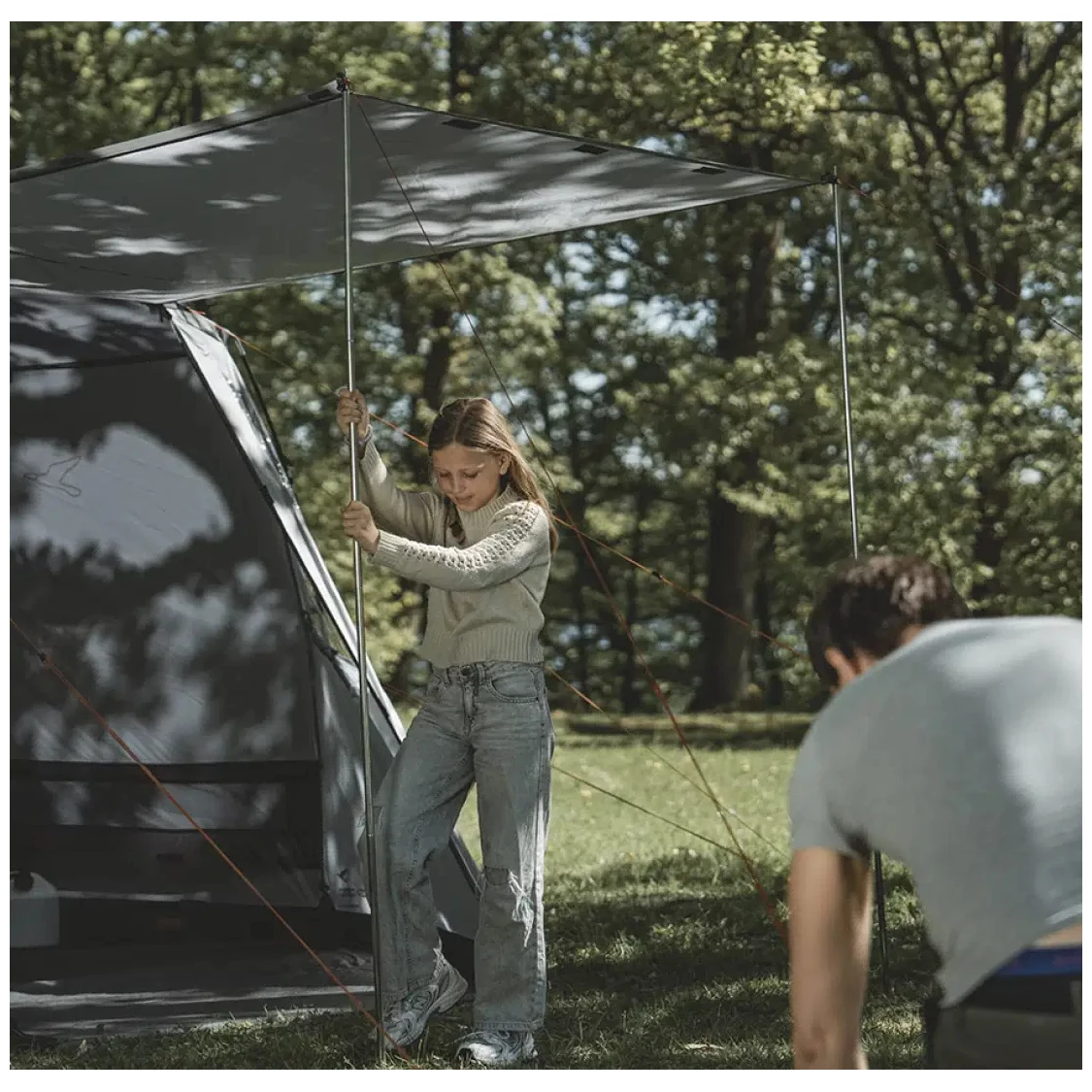 L'auvent Eidfjord est le choix idéal pour les voyageurs qui souhaitent un abri confortable près de leur van, tout en conservant leur liberté de mouvement. Grâce au système drive-away, vous pouvez facilement le connecter à votre campervan ou monospace, et le déconnecter en un instant lors d'une excursion – l'auvent restera en place.