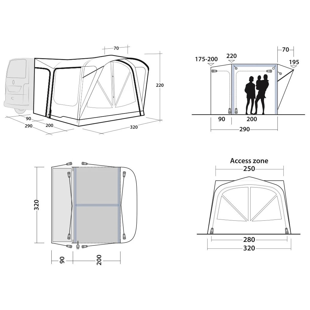 Tente gonflable pour fourgon aménagé Park PowerAir de la marque Outwell est le choix parfait pour les amateurs de voyage, qui apprécieront certainement son montage rapide et l'espace protégé suffisant.