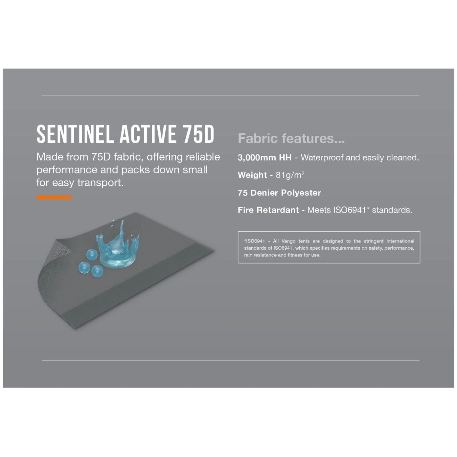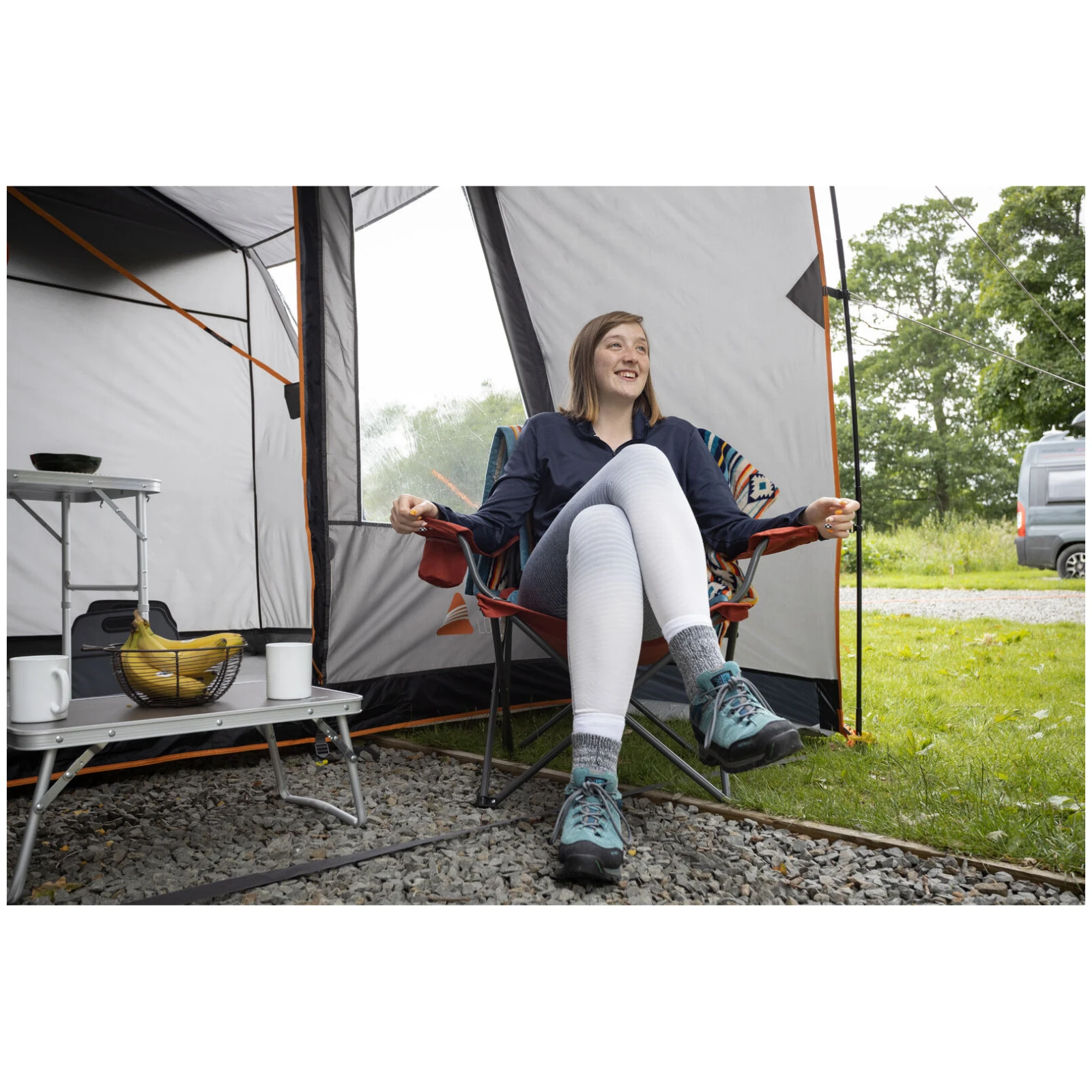 La structure est composée de tiges en fibre de verre légères et résistantes Vango PowerFlex, qui assurent la stabilité tout en maintenant un faible poids. Le tissu utilisé Sentinel Active 75D est imperméable (HH 3 000 mm), léger et compact, laissant ainsi plus de place dans le camping-car ou la camionnette pour d'autres équipements. La nouveauté est le système TriSpan de support de tunnel, qui renforce le tunnel, augmente sa hauteur et crée un espace plus ouvert et plus utilisable entre le véhicule et l'auvent.
