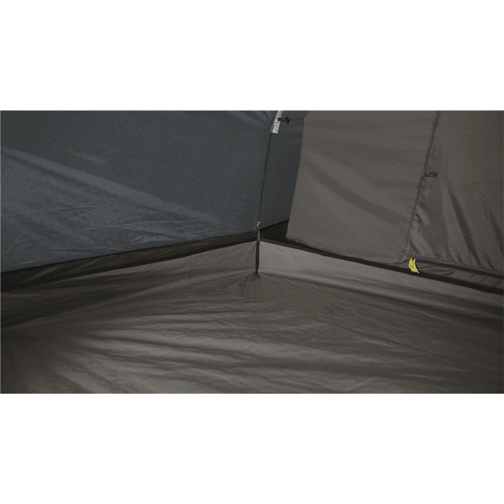 On accède à la tente par l'entrée principale spacieuse en forme de D, qui permet d'entrer sans obstacle, ou par l'entrée latérale. Derrière l'entrée se trouve un couloir spacieux avec des fenêtres teintées. Le toit clair, associé aux fenêtres teintées, éclaire suffisamment le couloir, tout en le protégeant de la lumière directe du soleil et des rayons UV. Si vous avez besoin de plus d'intimité, il vous suffit de suspendre le rideau à la hauteur souhaitée de la fenêtre. L'entrée de la chambre est équipée d'une moustiquaire, qui contribuera à améliorer la circulation de l'air et à vous débarrasser des insectes gênants. La circulation optimale de l'air est assurée par une ouverture de ventilation innovante à l'arrière de la tente.