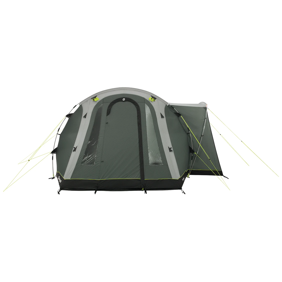La tente dispose de deux entrées accessibles aux fauteuils roulants et peut être entièrement résumée d'un côté. Le vestibule spacieux est doté d'un plancher amovible, d'un toit léger et de fenêtres teintées qui apportent suffisamment de lumière tout en protégeant du soleil et des rayons UV. Si vous avez besoin de plus d'intimité, il vous suffit de fermer les rideaux jusqu'à la hauteur souhaitée de la fenêtre. Derrière le couloir se trouvent deux chambres sombres avec des moustiquaires, offrant un espace pour un sommeil paisible. Les portes sont munies de bandes magnétiques cousues, ce qui permet d'entrer rapidement et silencieusement dans la tente. Des fermetures à glissière sont bien sûr également disponibles pour une fermeture plus étanche.