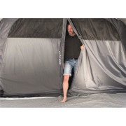 La large entrée panoramique avec moustiquaire vous permet d'entrer dans la tente sans aucun obstacle. La tente dispose également d'une entrée latérale avec un auvent. Le toit clair, associé aux larges fenêtres teintées, éclaire suffisamment le couloir, tout en protégeant de la lumière directe du soleil et des rayons UV. Si vous avez besoin de plus d'intimité, il vous suffit de fermer le rideau jusqu'à la hauteur souhaitée de la fenêtre. Pour un confort encore plus grand dans le couloir, nous recommandons l'achat d'un tapis d'origine compatible tapis d'origine compatible.