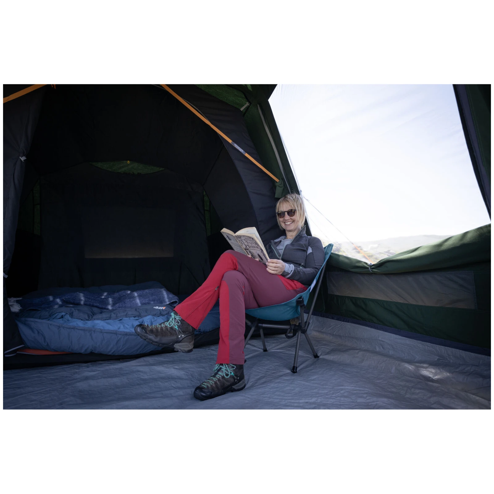 Les chambres Lights-Out sont de taille king size et contiennent un tissu occultant spécial. Les grandes portes d'entrée sont équipées d'un seuil rabattable, ce qui facilite l'accès à la tente, même pour les personnes avec des poussettes ou une mobilité réduite. Pour une climatisation confortable, la tente est équipée du système Vango AirZone, qui optimise la circulation de l'air et minimise la condensation. La stabilité est assurée par le système TBSII, qui renforce les arceaux et réduit les mouvements latéraux par vent fort.
